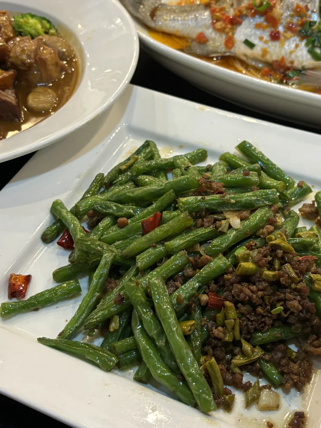 🔹 干煸四季豆:绝对是今日最爱了,我们两个人直接炫光光!豆角干香脆爽口,调味恰到好处,绝对是开胃好菜!