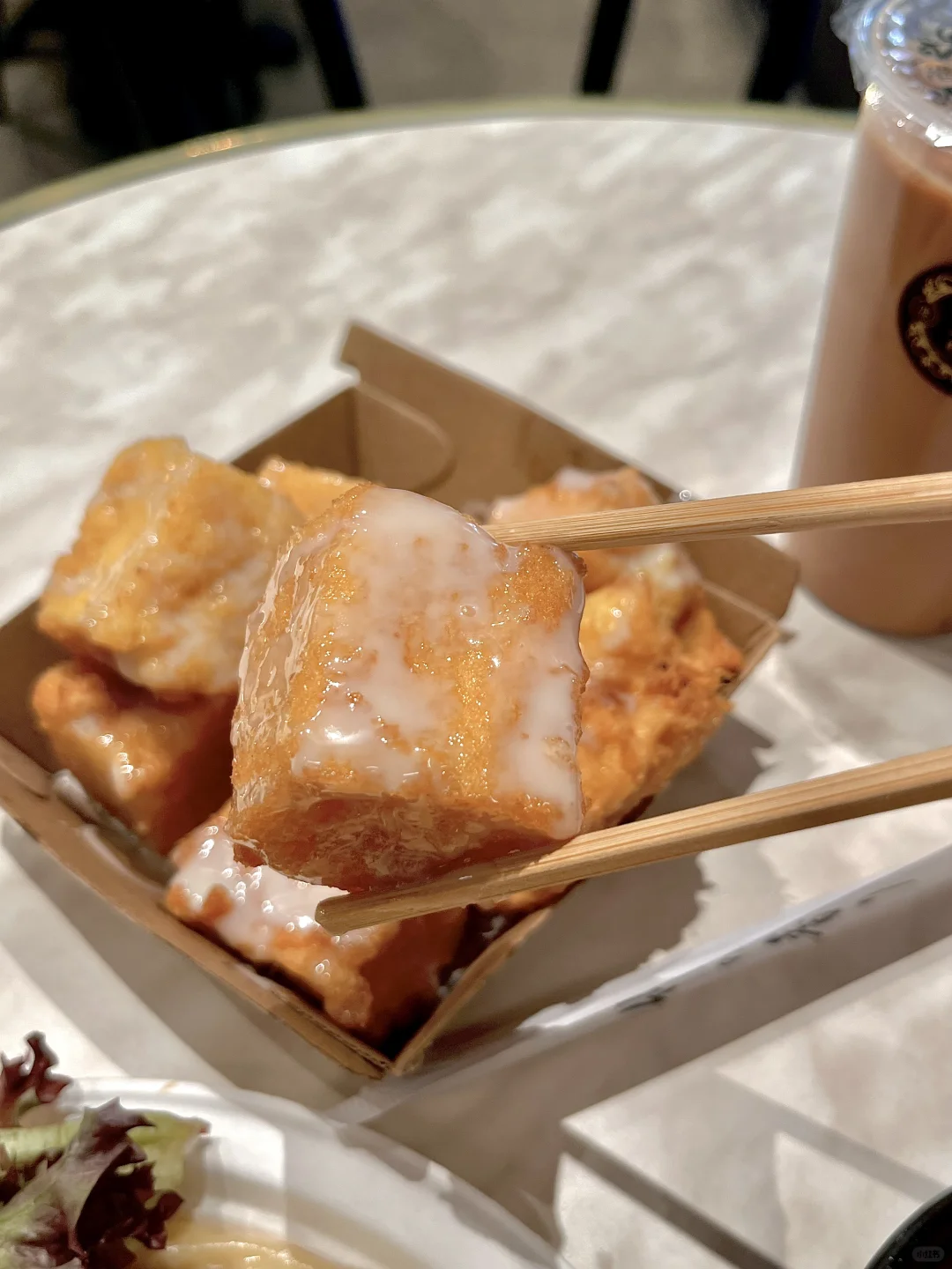 西多士(炼奶):面包是炸过的,有很浓郁的鸡蛋的香味,很大一份我们两个人没吃完打包了,我比较喜欢炼奶,他家也有花生酱口味的!