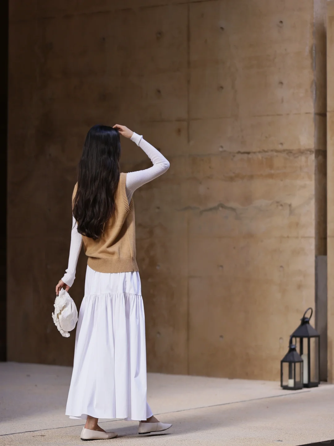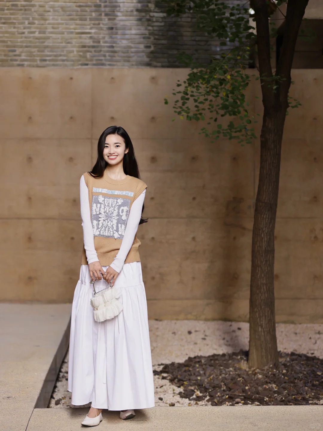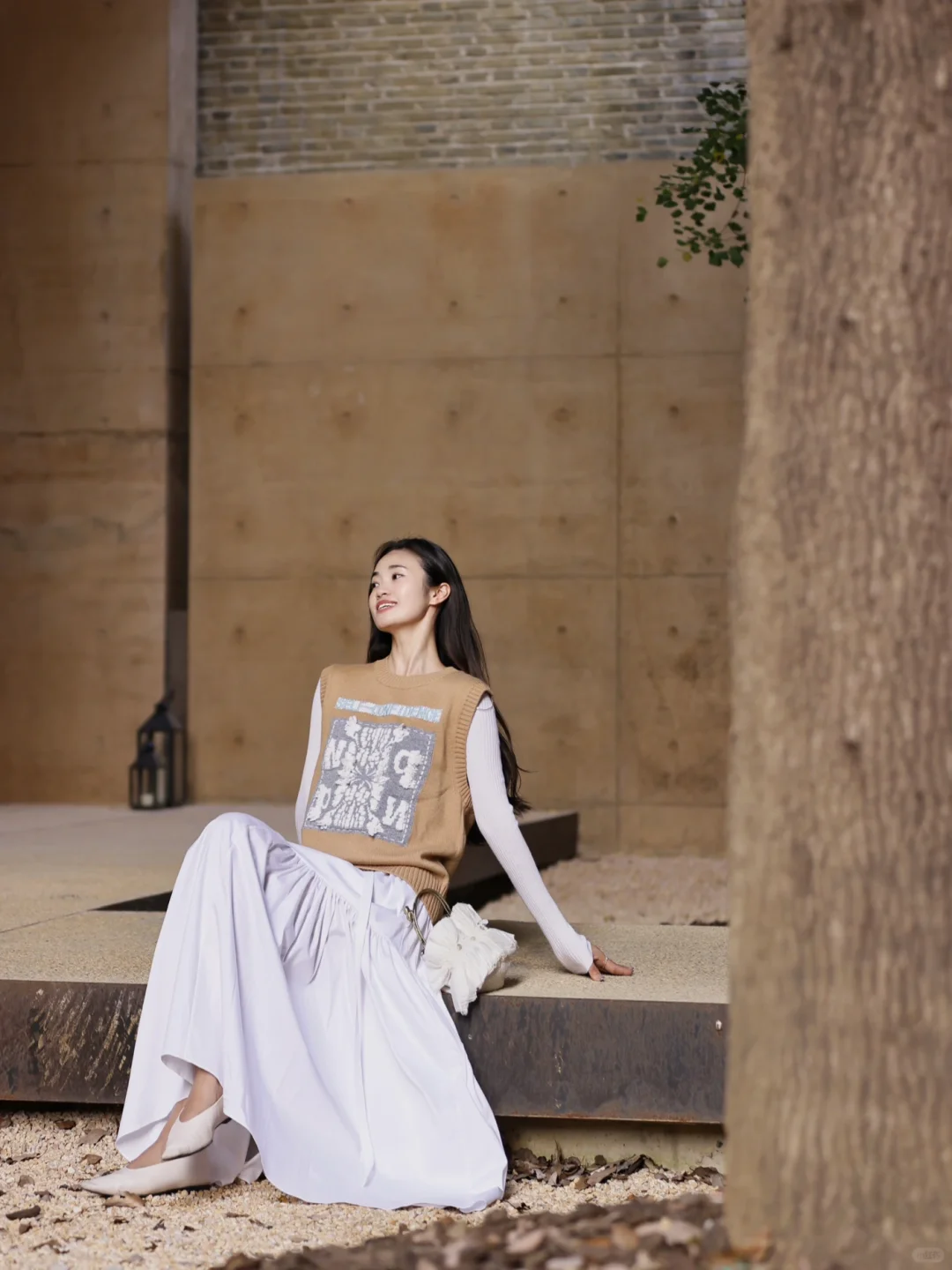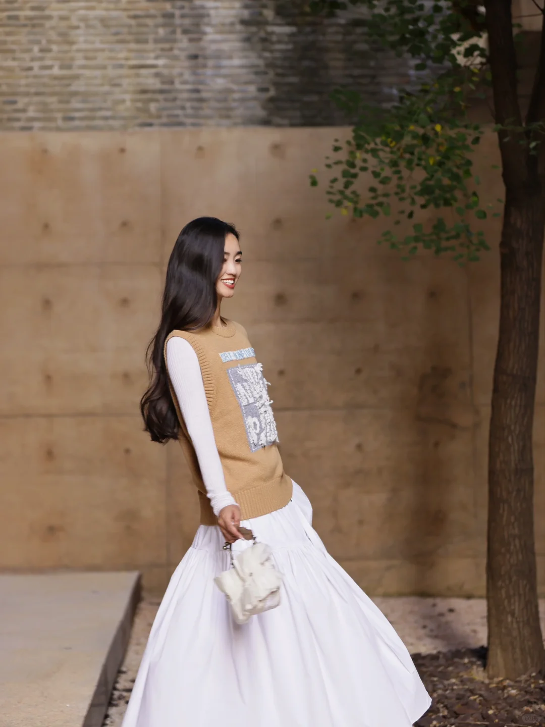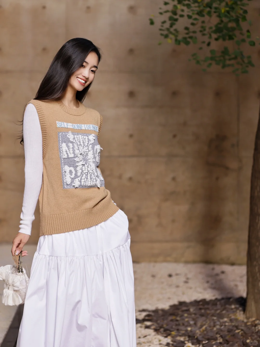 夏天在自然公园里,穿白色背心搭配黄色牛仔裤,妥妥就是甜美少女本女。白色背心清爽又