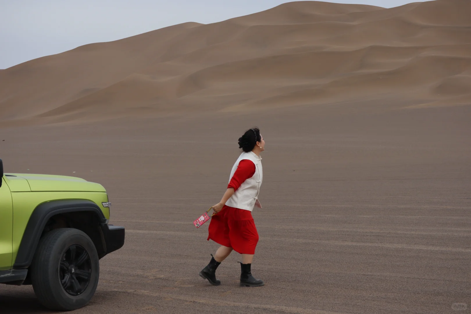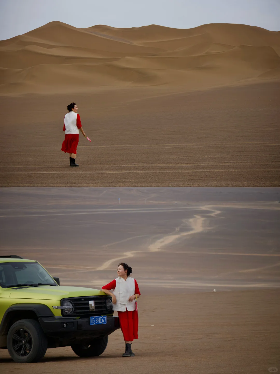 海市蜃楼这里可以冲沙 记得租四驱的车车 一路上我们几次要放弃目的地了 因为沙漠我们在腾格里看得更壮观,就是因为它平缓才可以玩冲沙,我们属于比较小心的司机 略微玩了下就回吐鲁番了 不过还是在沙里扎了🛞[萌萌哒R][萌萌哒R]