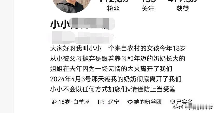 罪有应得!编造虚假生世,亲妈竟成养母,百万粉丝女网红造假卖惨,骗取粉丝同情博流量,结果在直播带货时被一锅端被抓! 相信一些喜欢看直播的网友知道这个网名为“小小努力生活”、真名肖某某的女博主,一开始直播时,她就对着镜头诉说道:她自幼被亲生父母抛弃,是养母把她带回家,含辛茹苦地把她抚养成人。然而一场突如其来的大火,夺走了养母亲生女儿的生命,养母从此精神失常,接着又被养父抛弃,如今,自己一个人带着养母艰难度日。 她的这番话语,短时间内收获了屏幕前大量网友的同情,纷纷表示“这姑娘太不容易了”、“孩子加油”,还有网友给她捐款,在“小小努力生活”等人的包装炒作下,她在某平台直播间的粉丝量也蹭蹭上涨,在被封号之前超过了112万人。 9月4日,肖某某等人在直播时,被当地警方抓获,并以扰乱公共秩序为由,被处以行政拘留10天的处罚。
