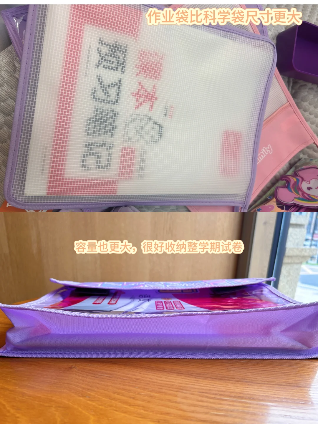 两个文件袋也都是Tiger Family的,太实用了,小的有分层作为科学分类袋,按科目分类整理好放书包里。要用的时候就不用到处翻了。大的这个收纳末姐作业,全透明的找起来也很清楚,还是防泼水设计,家里有小马虎的也不怕孩子把水洒在作业上啦。