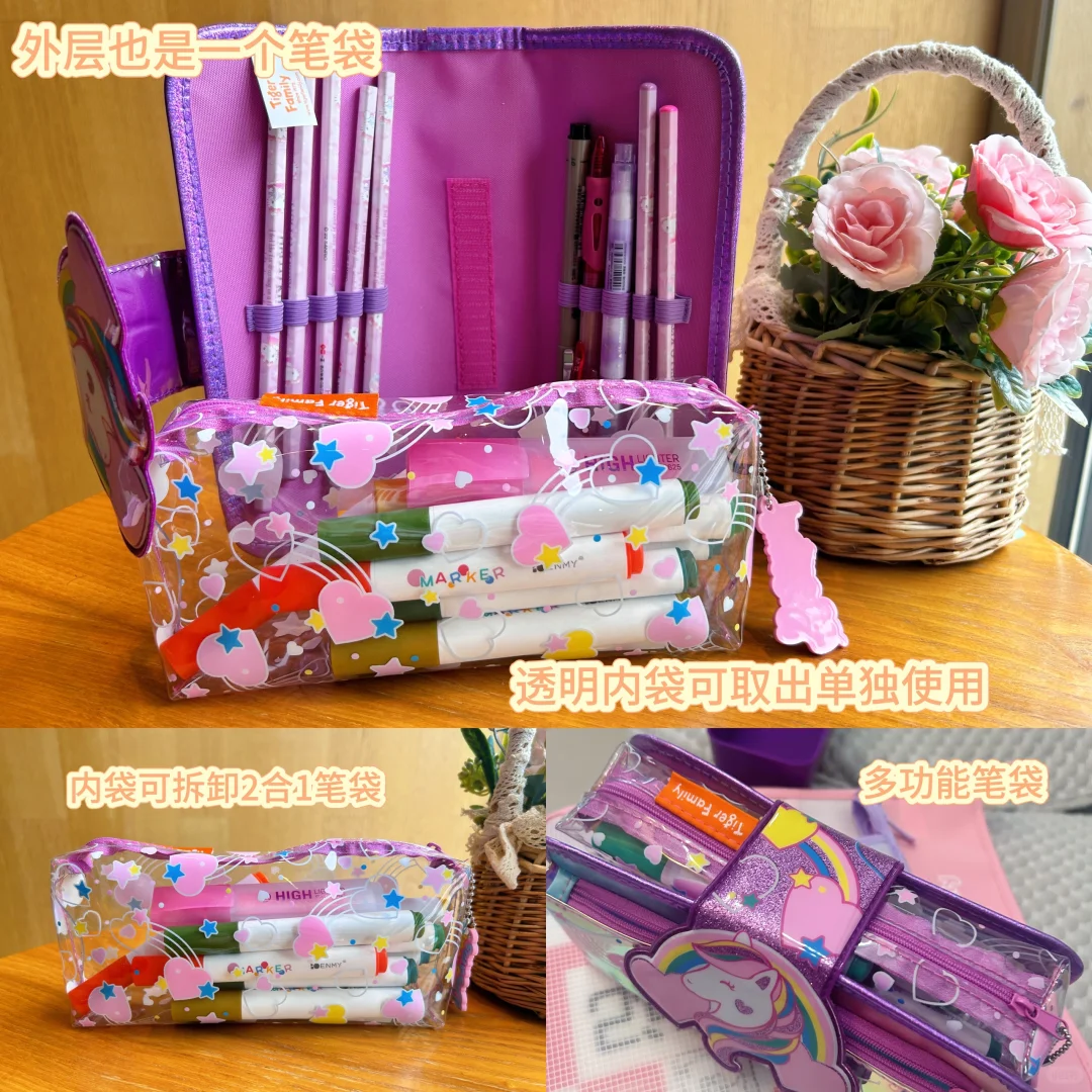末姐常用的笔袋有2个,她说换着用可以换心情[破涕为笑]这款小马的笔袋,空间利用的很好,外层也可以插笔,还可以分成2个笔袋,颜值超高。还有个美人鱼的是可以变成笔筒的,又很轻巧不占地方,敞口又大拿笔也方便。