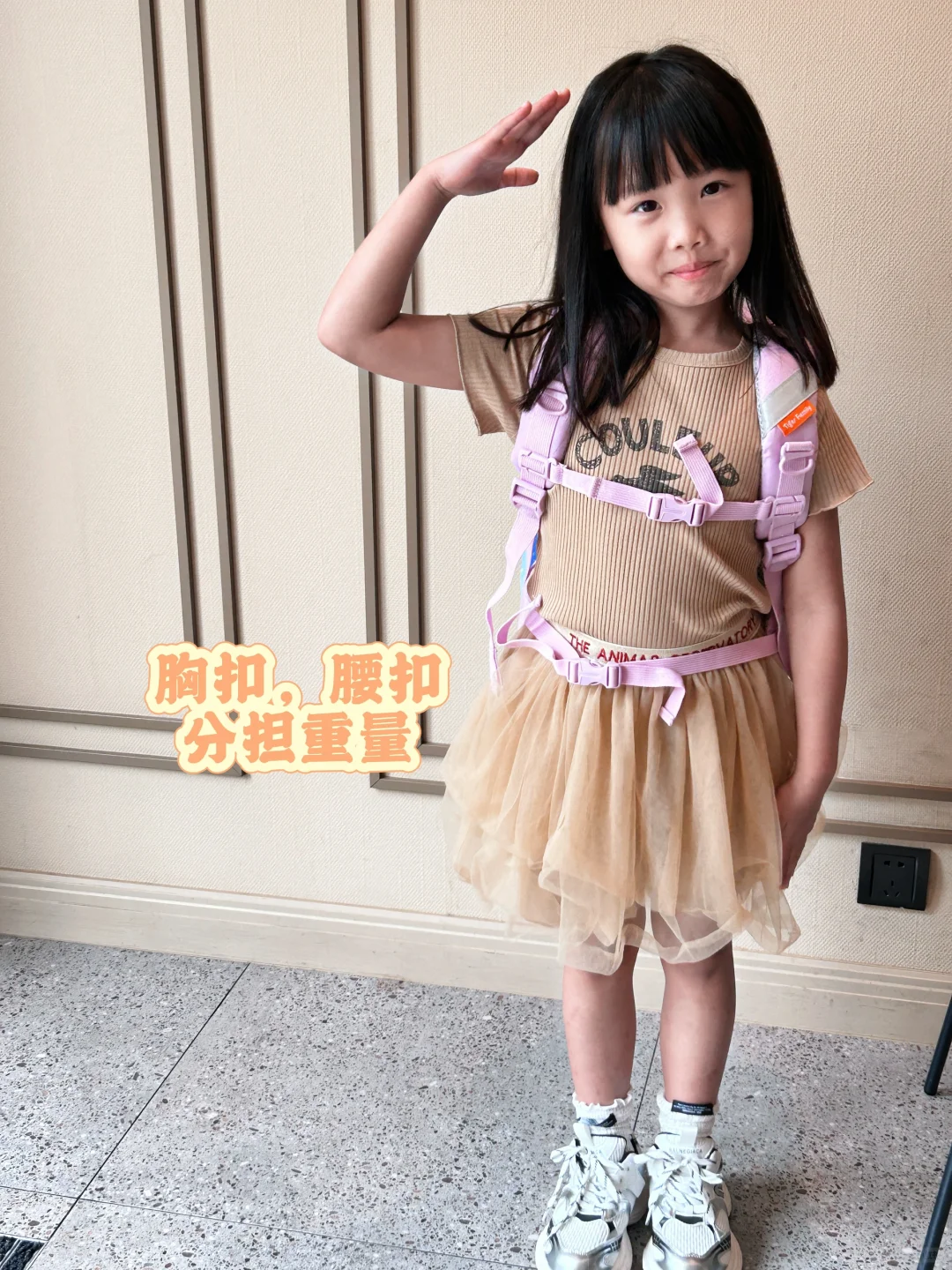 书包自重特别轻,他们家的书包是末姐用下来自重最轻的了,背后还有中空透气的背垫,背着的时候贴合背部,肩带也是弯弯的加宽加厚的,再把胸扣腰扣扣上力量就被分散出去了,就算背再重的书本,背着也不会觉得累,反而更加轻松!