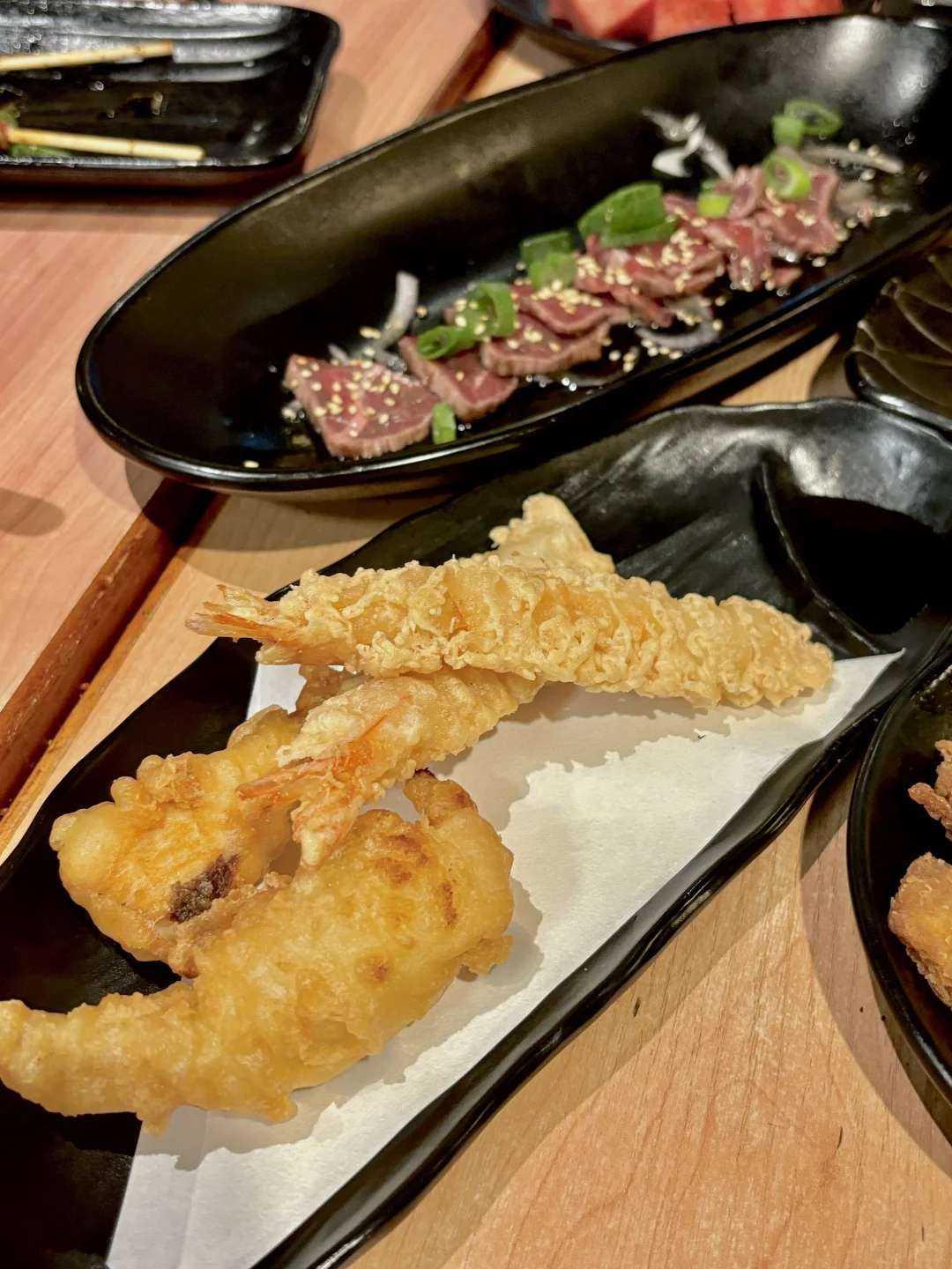 炸物:点了天妇罗炸虾,鱼和地瓜外酥里嫩,没有很油腻,外层的面衣非常酥脆,配上天妇罗酱汁真的很好吃!🔥
