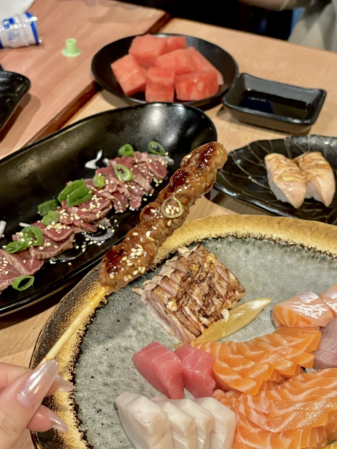 小食:特别推荐牛肉串,有一口爆汁的感觉!我也喜欢里面的寿喜烧牛肉,beef tataki都很值得尝一尝🍖