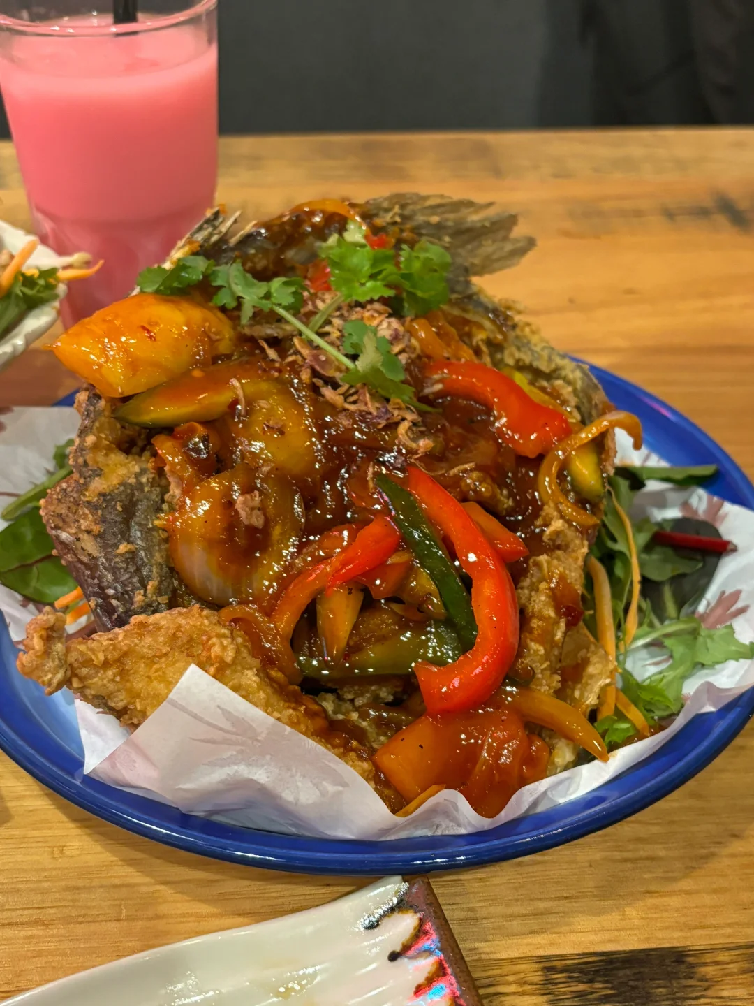酸甜炸鱼也非常好吃,外酥里嫩,还剃了骨,炸了的鱼搭上浓郁的酱真的绝配❗️