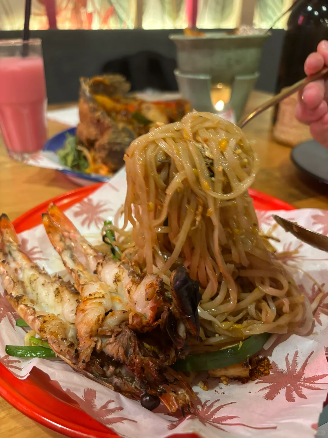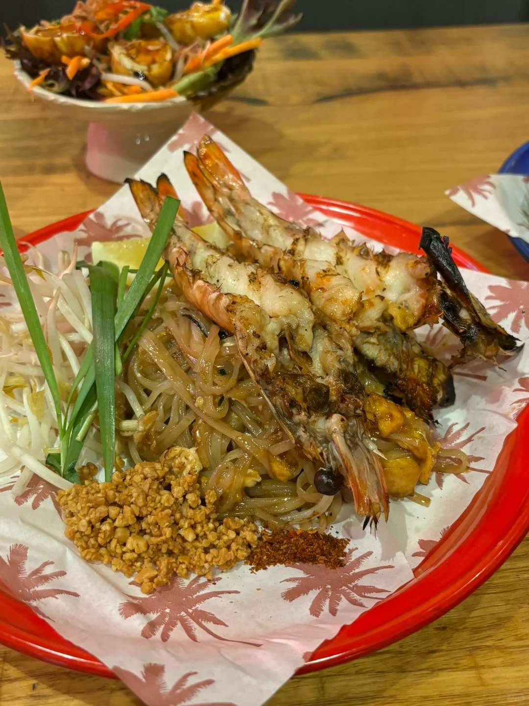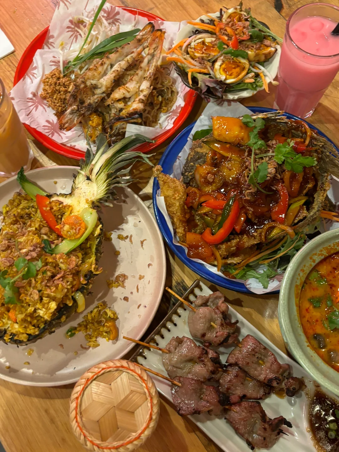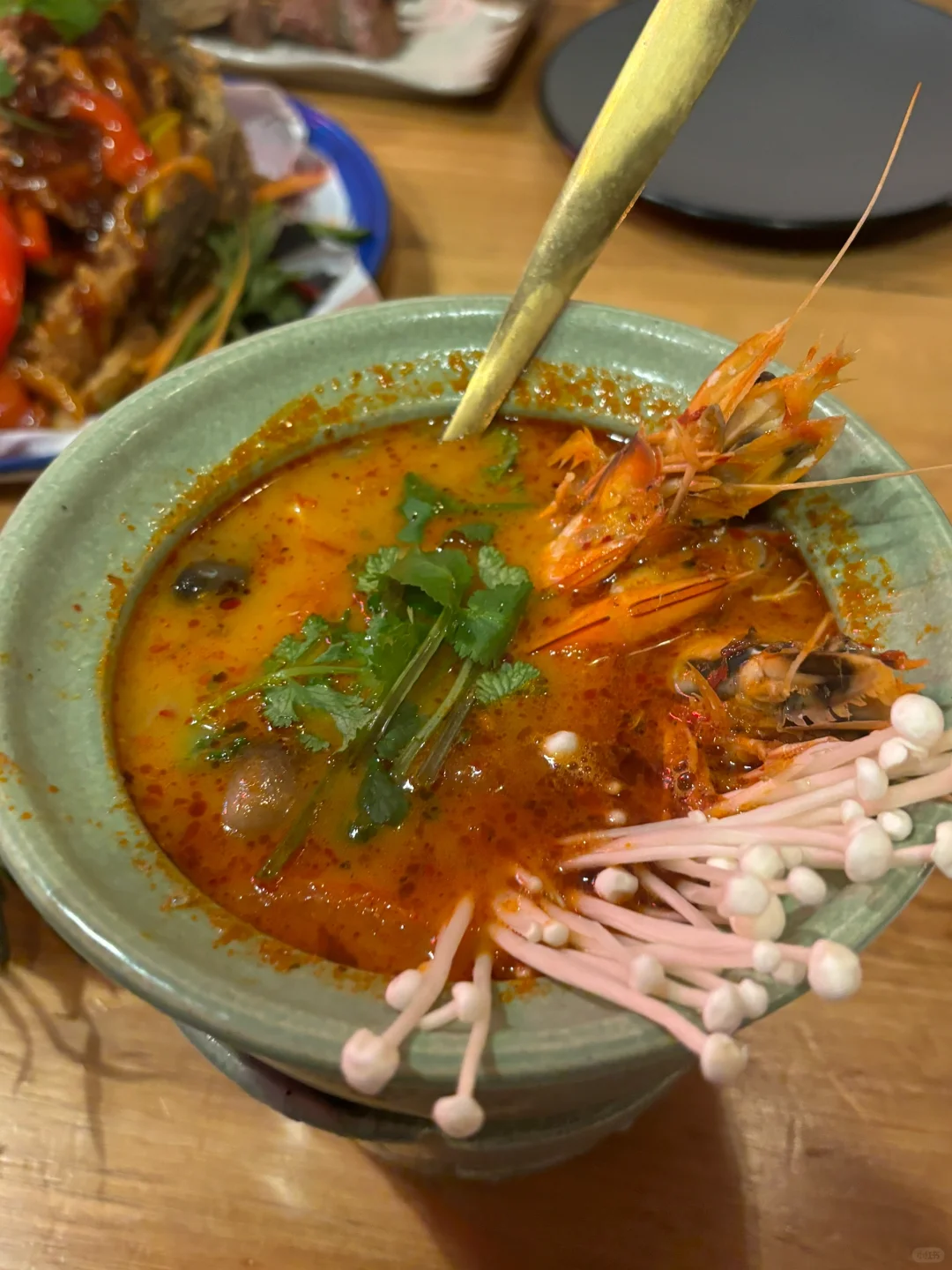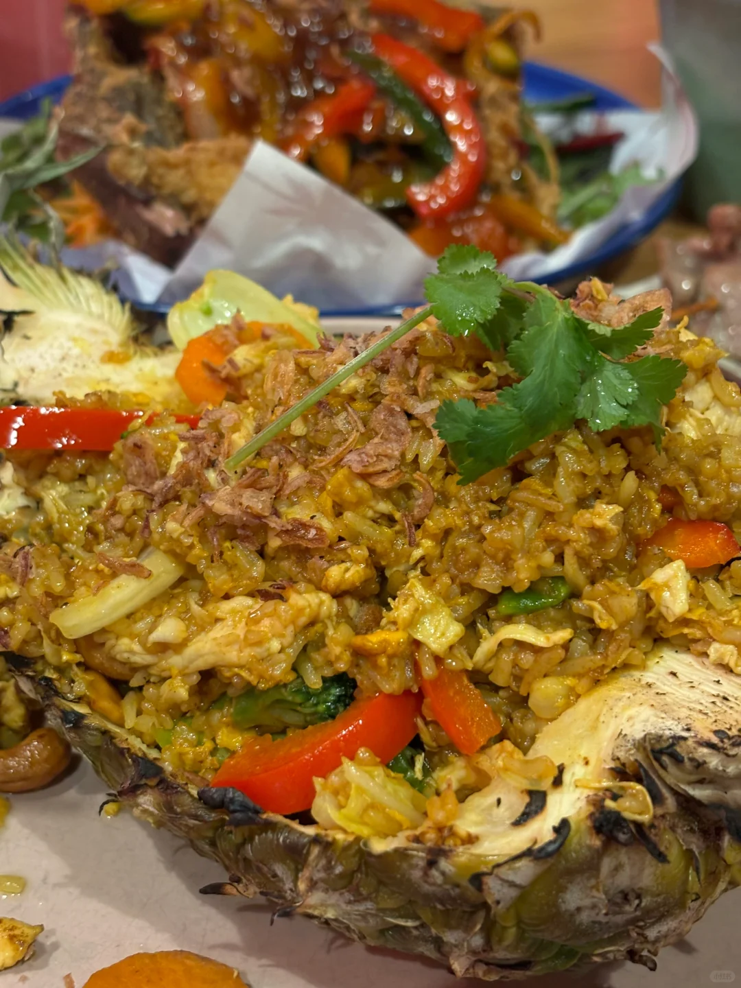 咱们点了几道比较经典的泰菜,有泰式炒河粉pad thai,菠萝炒饭,冬阴功,味道都不错,菜谱巨多选择,肯定有你想吃的[喝奶茶R]