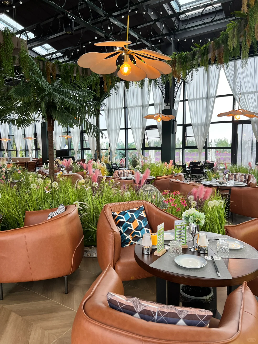 听说晚上更漂亮! 位置就下花海之约 餐厅叫在花野 这里能喝下午茶 也能点烧烤等正餐 环境很棒 拍照超漂亮🤳 小姐姐们可以去打卡哦!