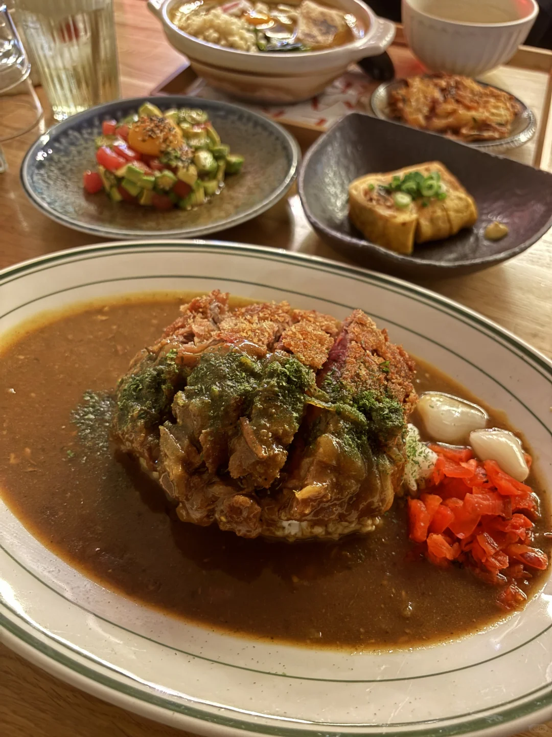 转角遇到爱了,这家维妈附近的日式咖喱屋太哇塞了!之前路过看见老多人了,就打算去尝尝!氛围超赞顺着vibe点了cocktail小喝一下[自拍R]嘻嘻