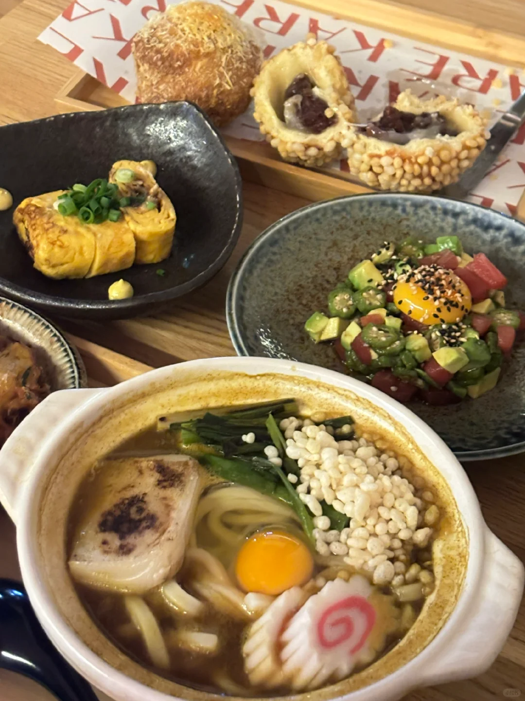 咖喱乌冬面的咖喱稍微淡一些但和无菌蛋混合一起绝配,他还有个糯叽叽的mochi[害羞R]