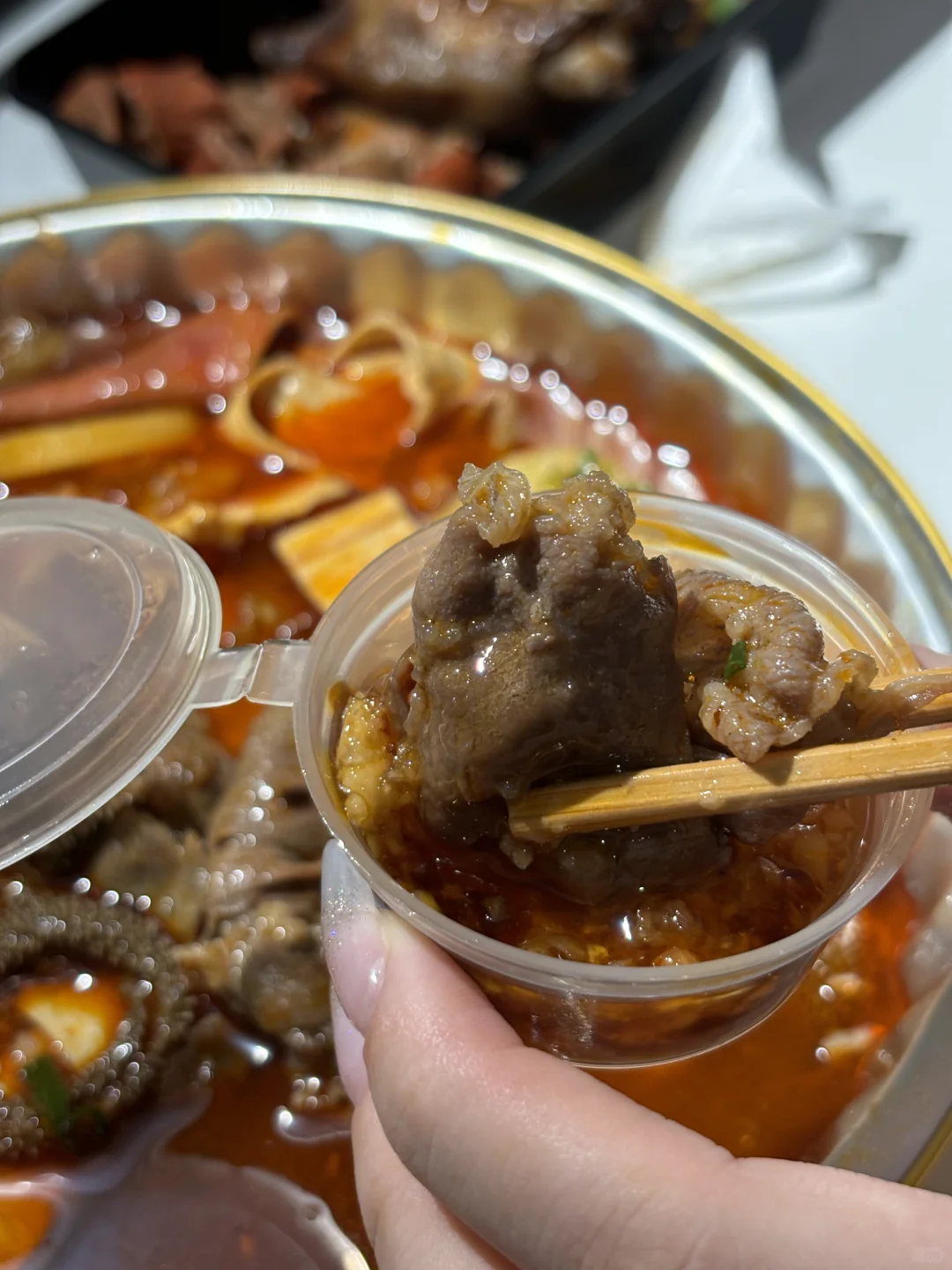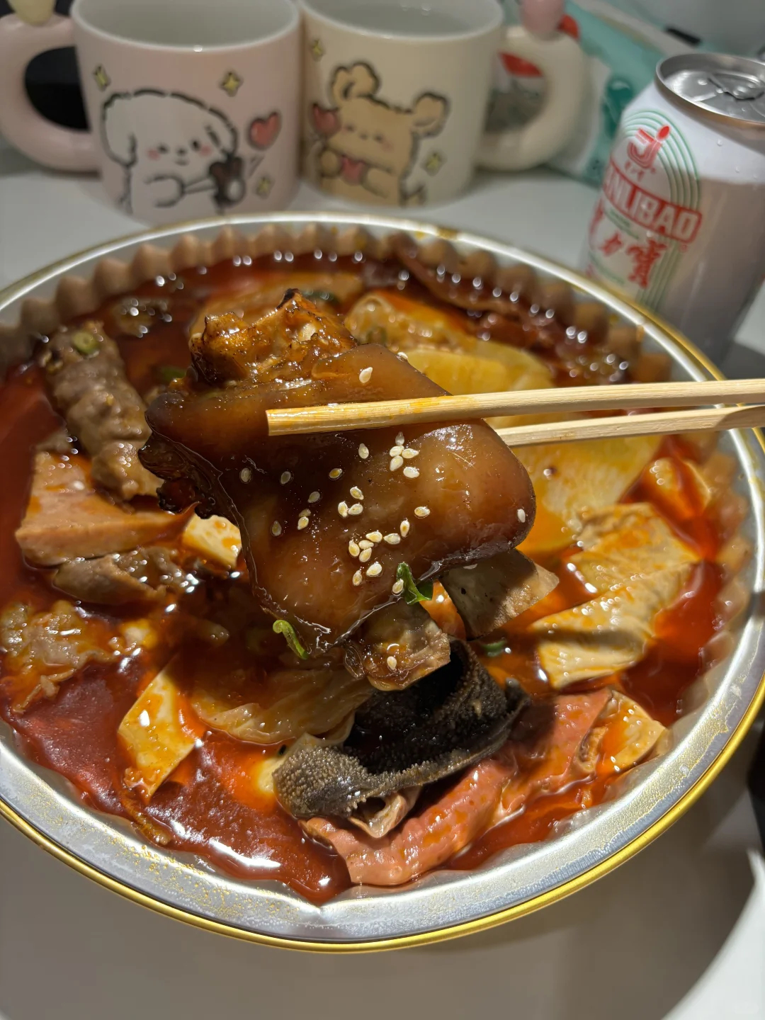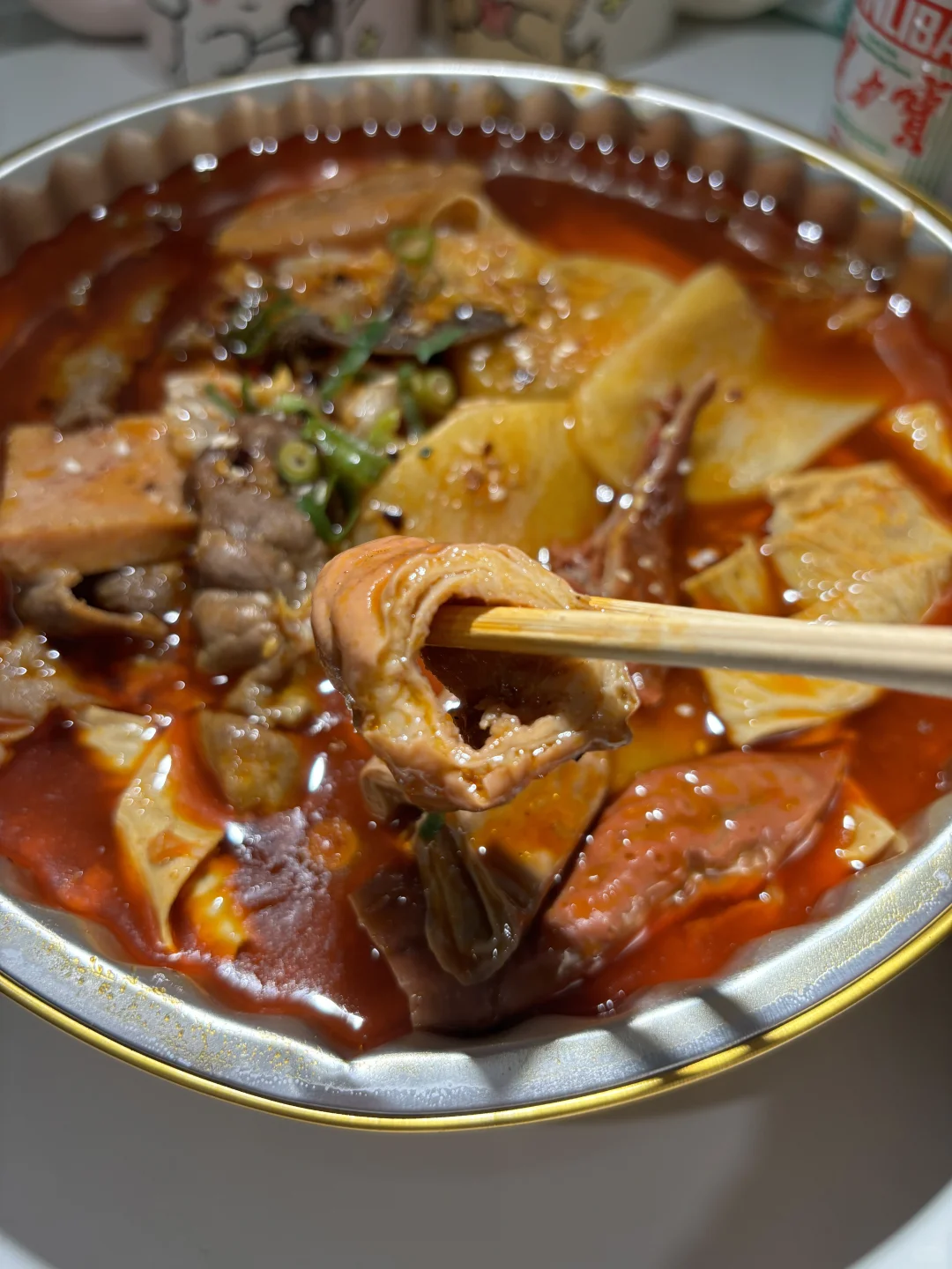 感觉每次final或者赶due时都会经常吃麻辣烫冒菜,方便又好吃 刷到了饭团🍙外卖平台上的蜀一蜀二,看起来很诱人而且还有优惠 点了个勇敢牛牛,很大一份,里头的嫩牛肉又大片又嫩,黑毛肚爽口Q弹,还有肥牛,都很入味儿,香香辣辣,倍儿好吃[色色R] 配菜有白菜,腐竹,土豆 卤肥肠和卤猪蹄都没有异味,个人觉得扔进汤里泡一会儿更好吃[害羞R] 很划算啊7️⃣折,还free炒饭和鹌鹑蛋,自取还便宜点,像是在送钱,就在ct大味火锅那儿[萌萌哒R]