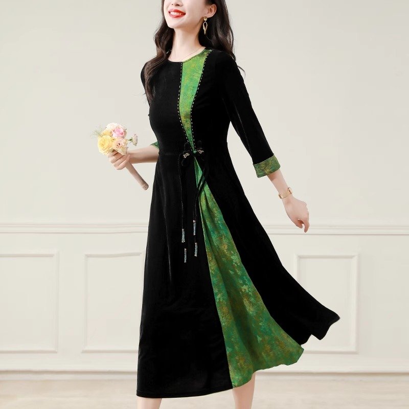 金丝绒顺滑,轻盈如羽,秋日内敛奢华之选,绽放女性温婉光彩。连衣裙金丝绒连衣裙