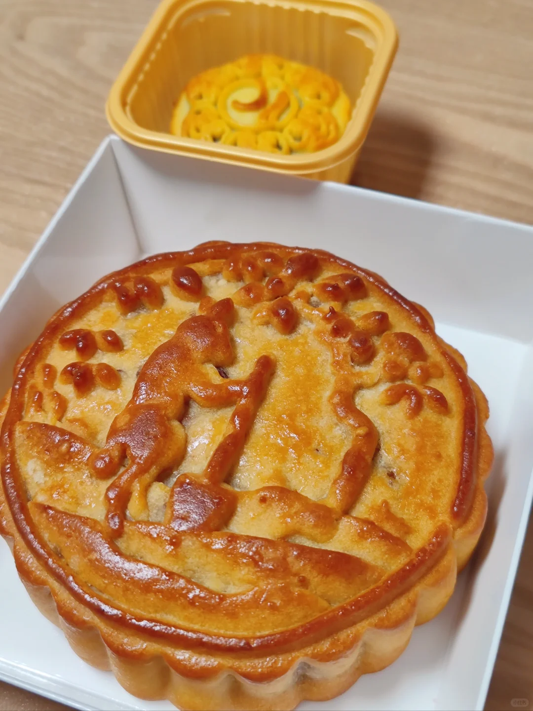 爹妈天天没事儿去逛北海,给我带回来一块巨大的椒盐五仁大月饼。 就是在北海公园里的仿膳买的。 个头特别大,看看和普通月饼的对比,足有普通月饼六个那么大。 而且特别特别硬。 留到中秋节才吃,刀劈斧剁砖头砸,终于是给弄开了。 里面满满的五仁馅儿,四散的椒盐香。说实话,比我想象中要好吃,因为有椒盐的加入,所以有那么一丝丝咸味,挺解腻。 跟着一起买回来的小点心就很一般了,没什么味道。 仿膳已经不是我小时候的味道了,跟我在故宫的御膳房吃的点心,更是比不了了。