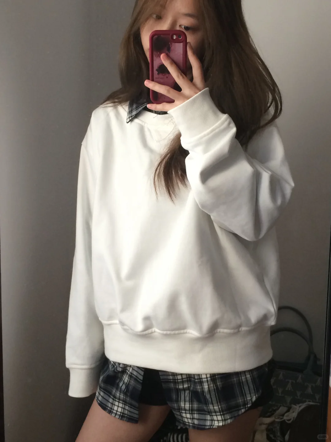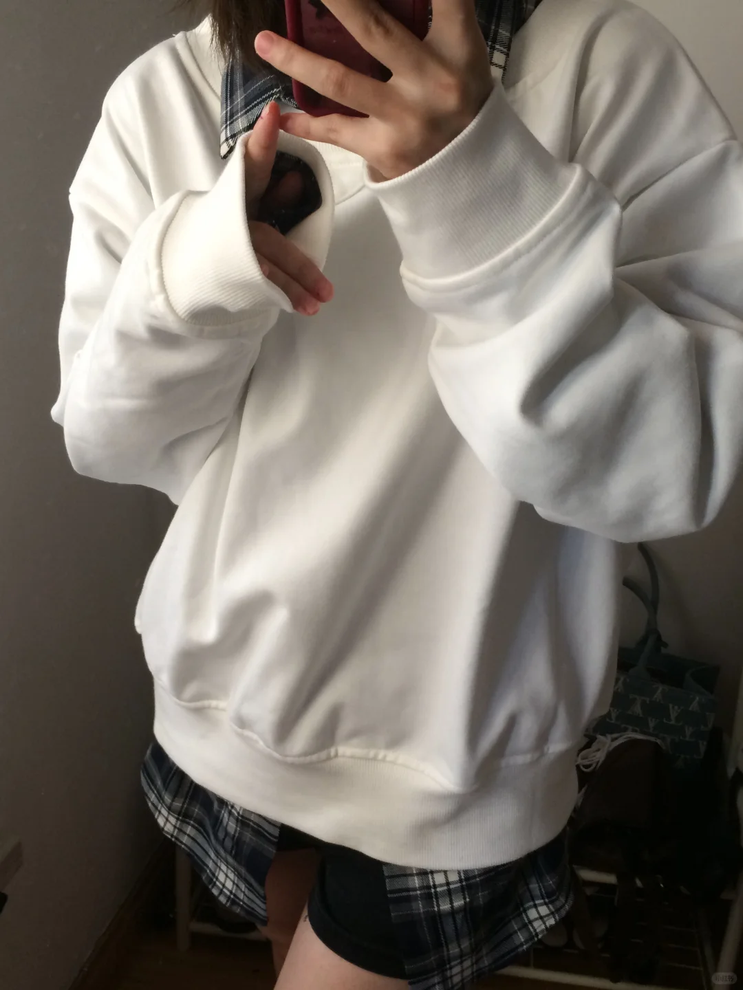 属于宽松的那种版型 很喜欢的点在于他的领口较一般的偏大,所以就超级适合叠穿,漏个领子出来,就觉得穿搭不那么单调了 当然也可以直接穿,或者当斜肩穿噢