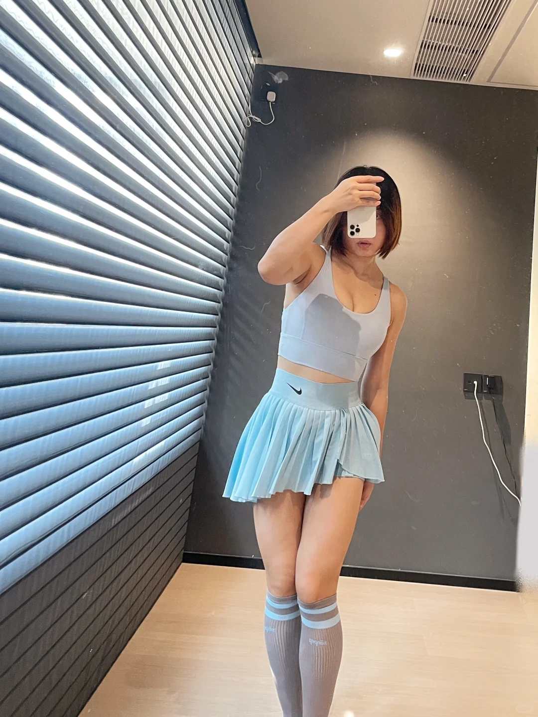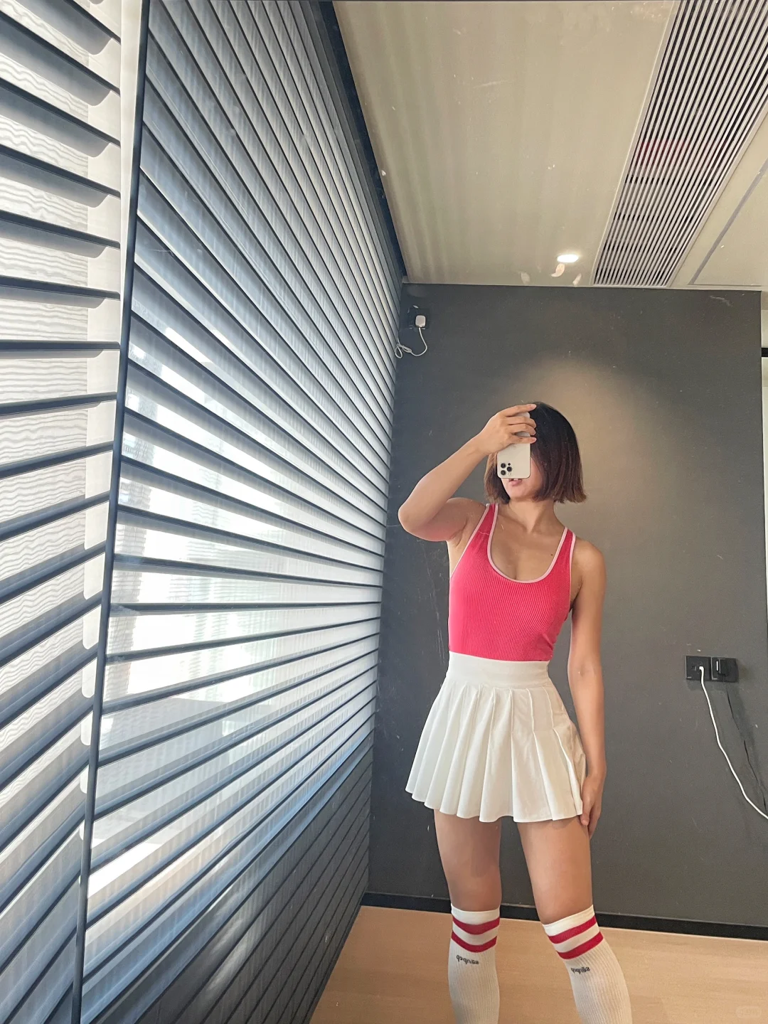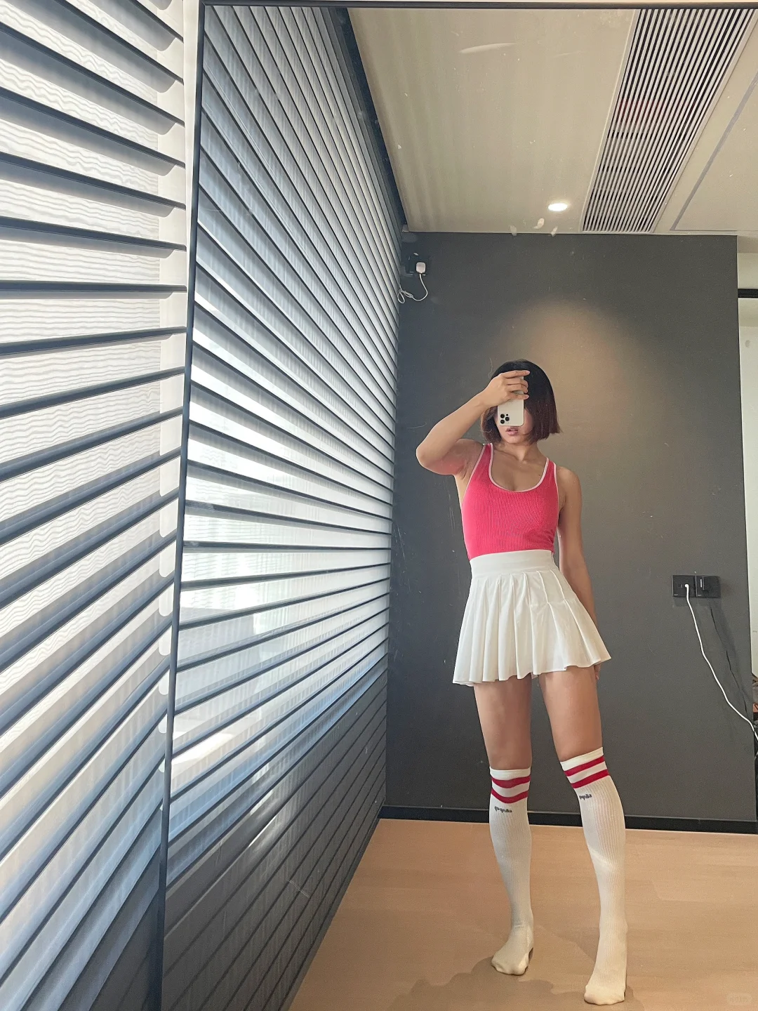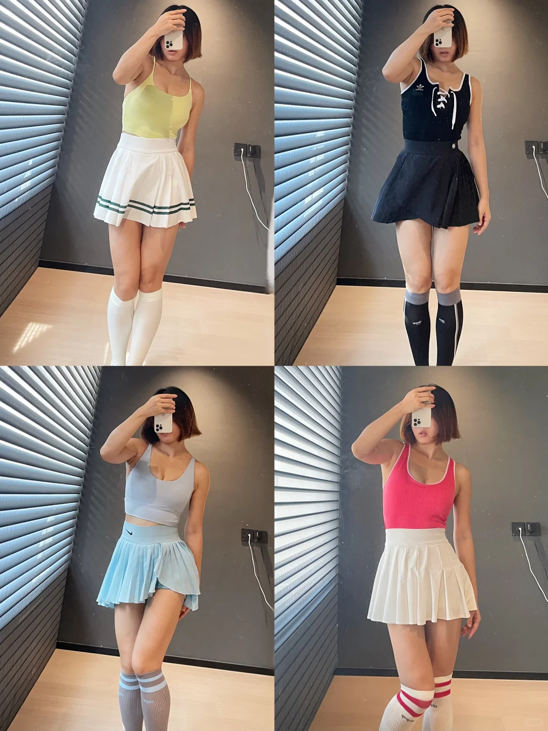 那必然是长筒袜 1️⃣保暖 秋天晚上开始慢慢变凉 长筒袜一定程度保暖膝盖和腿 2️⃣瘦腿 袜子的压力视觉上有一定的瘦腿功效 而且能够防止静脉曲张 3️⃣防疲劳 可能是压力袜的关系 高强度的运动之后脱下袜子 有放松的作用 💕 最主要的 还是因为长筒袜百搭了 搭配不同的网球裙 会有不同的点睛效果