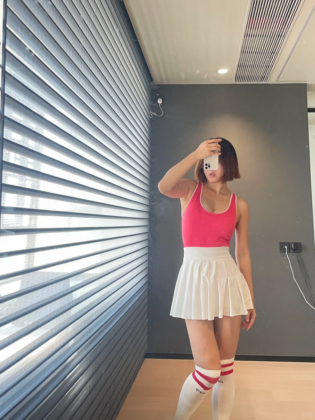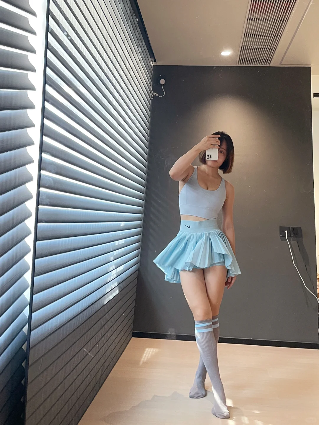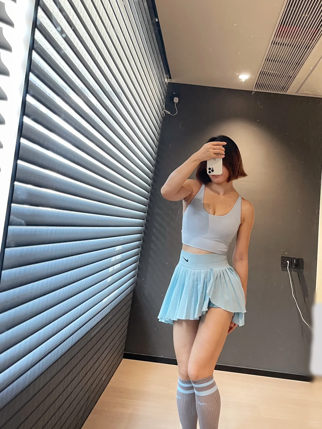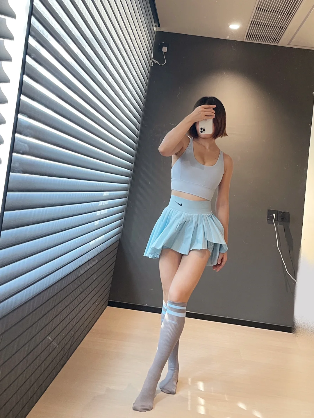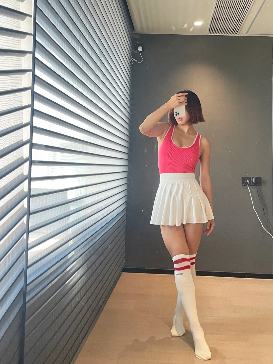 那必然是长筒袜 1️⃣保暖 秋天晚上开始慢慢变凉 长筒袜一定程度保暖膝盖和腿 2️⃣瘦腿 袜子的压力视觉上有一定的瘦腿功效 而且能够防止静脉曲张 3️⃣防疲劳 可能是压力袜的关系 高强度的运动之后脱下袜子 有放松的作用 💕 最主要的 还是因为长筒袜百搭了 搭配不同的网球裙 会有不同的点睛效果