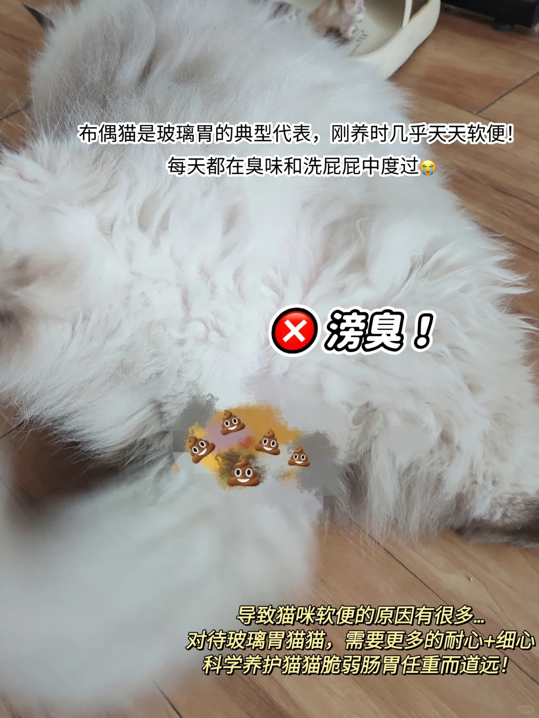 🤔猫天生消化道短,肠胃弱,很爱软便。布偶猫算是玻璃胃典型代表了。说实话,刚养布偶时几乎天天软便,滂臭!!屁屁周围的毛总粘上💩每天都在臭味和洗屁屁中度过😰真的很崩溃…关键刚开始不懂,分不清是什么原因导致的软便,经常跑🏥花了不少💰