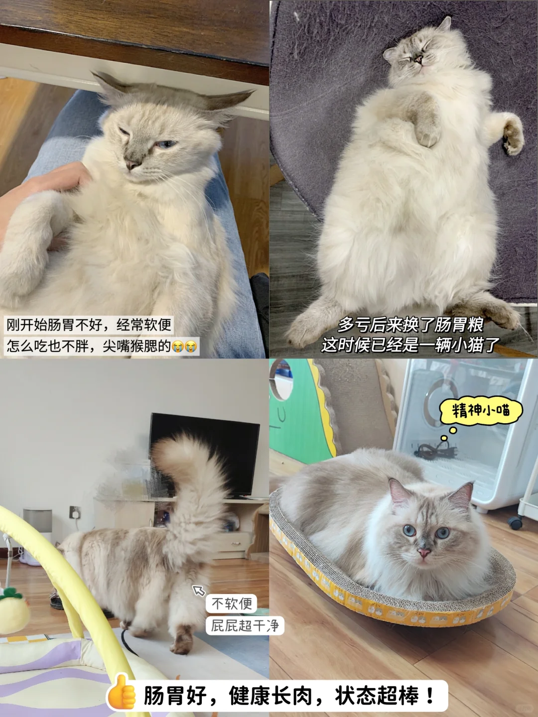 我家布偶是兄弟姐妹中蕞瘦小的一只,养到现在圆润、活泼又强壮。见过我家猫猫的巨大变化的朋友问的蕞多的问题就是猫咪的肠胃养护😂
