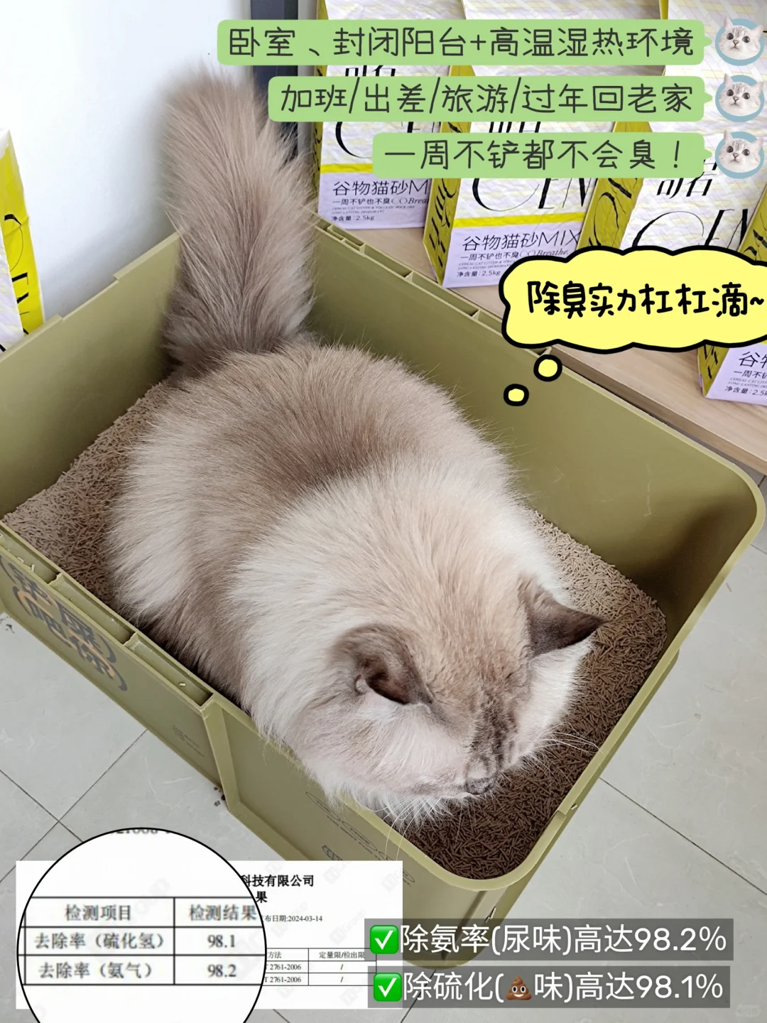 他家自研的改性秸秆专利技术(专利号:ZL 2021 1 0068548.X)做成的猫砂,除氨率高达98%,能持久吸附氨气,一周不铲都不会臭👍🏻👍🏻