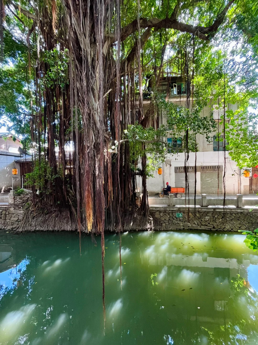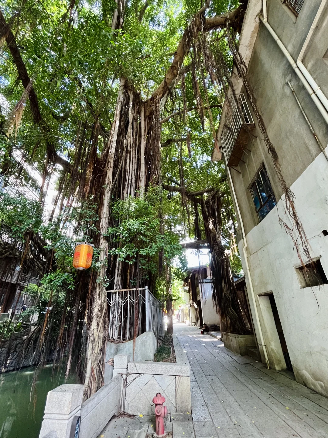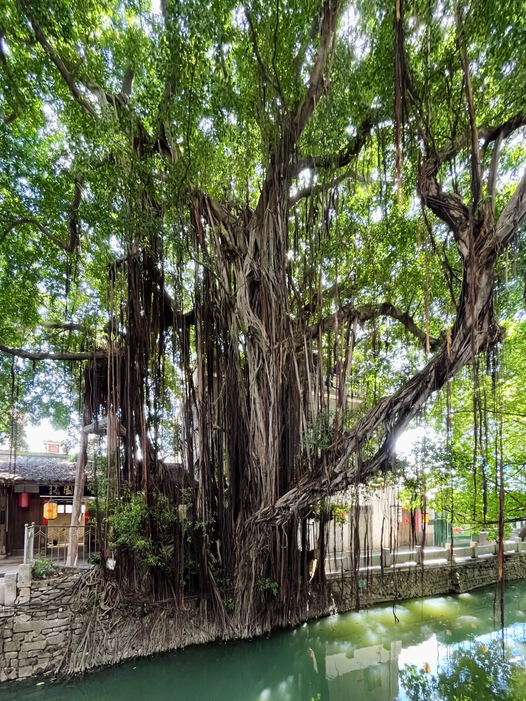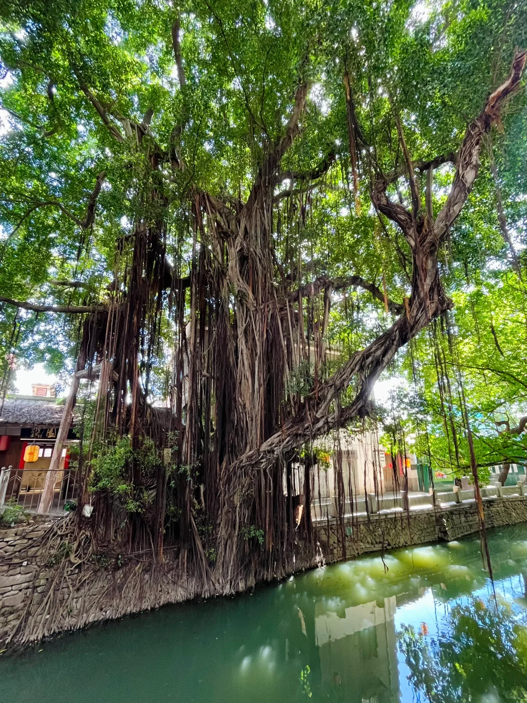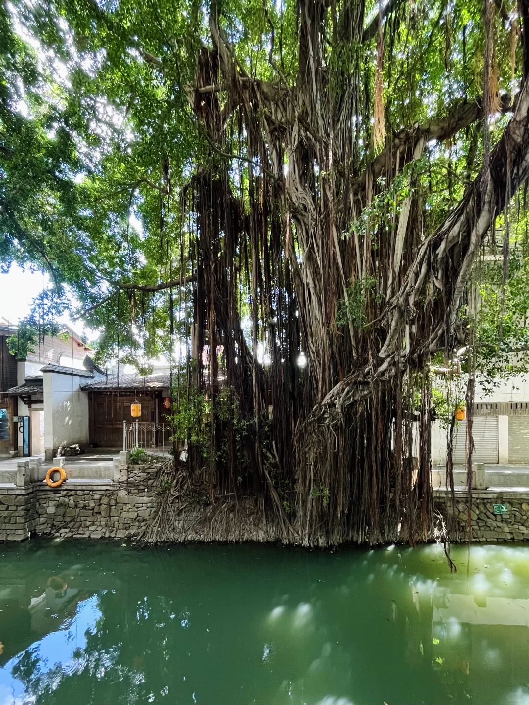 福州古榕不胜枚举,百态千姿。走在福州的大街小巷,苍劲挺拔的榕树随处可见,不经意间就会遇到这些“明星”榕树。今天就介绍一棵朱紫坊内安泰河畔的古榕。