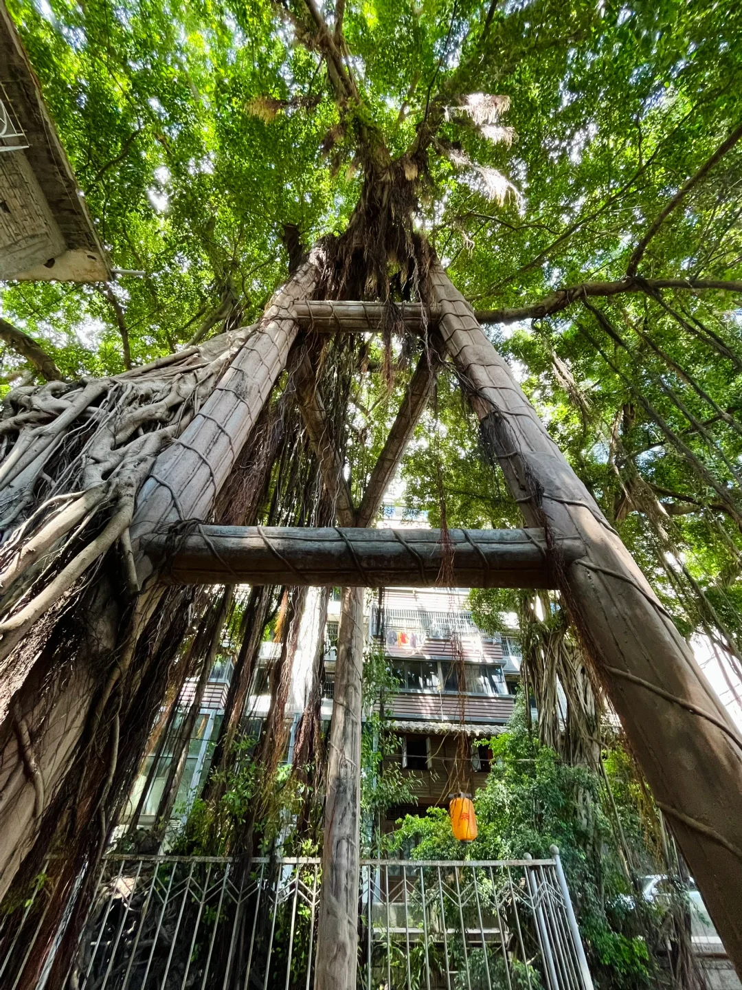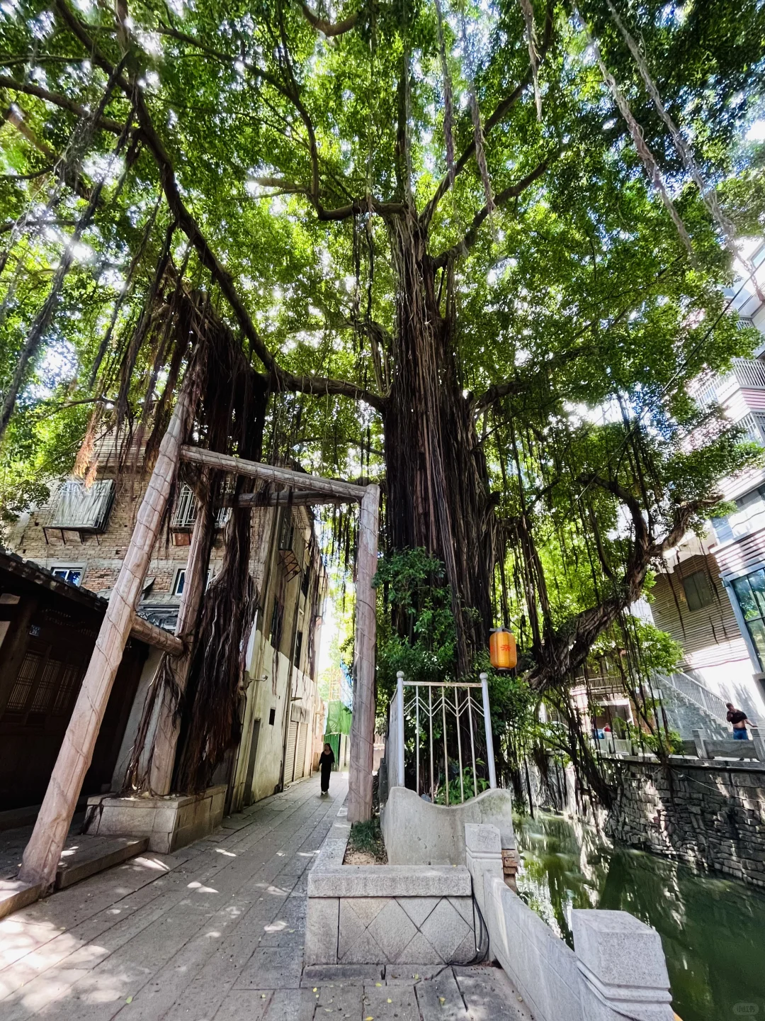 其中,朱紫坊26-28号门前,有棵巨大且奇特的榕树,号称“龙墙榕”,相传植于唐末天复元年(901年),树龄已逾千年,围径约10米,树高约30米,冠幅庞大,荫及安泰河两岸。