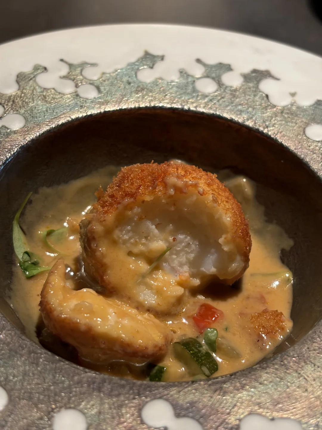 炸虾球,外酥里嫩,浓浓的laksa酱带着椰浆的鲜香,和普通laksa区别是这个不辣[赞R]