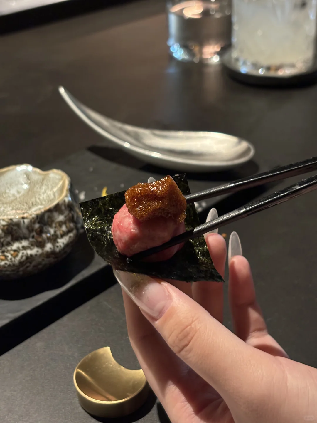 🥩生和牛卷海苔,巨香好吗,上面那块东西也不知道是什么反正超级好吃