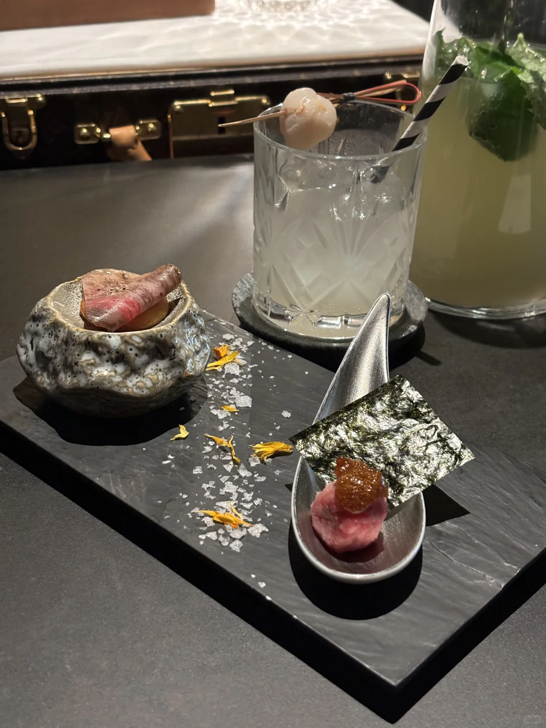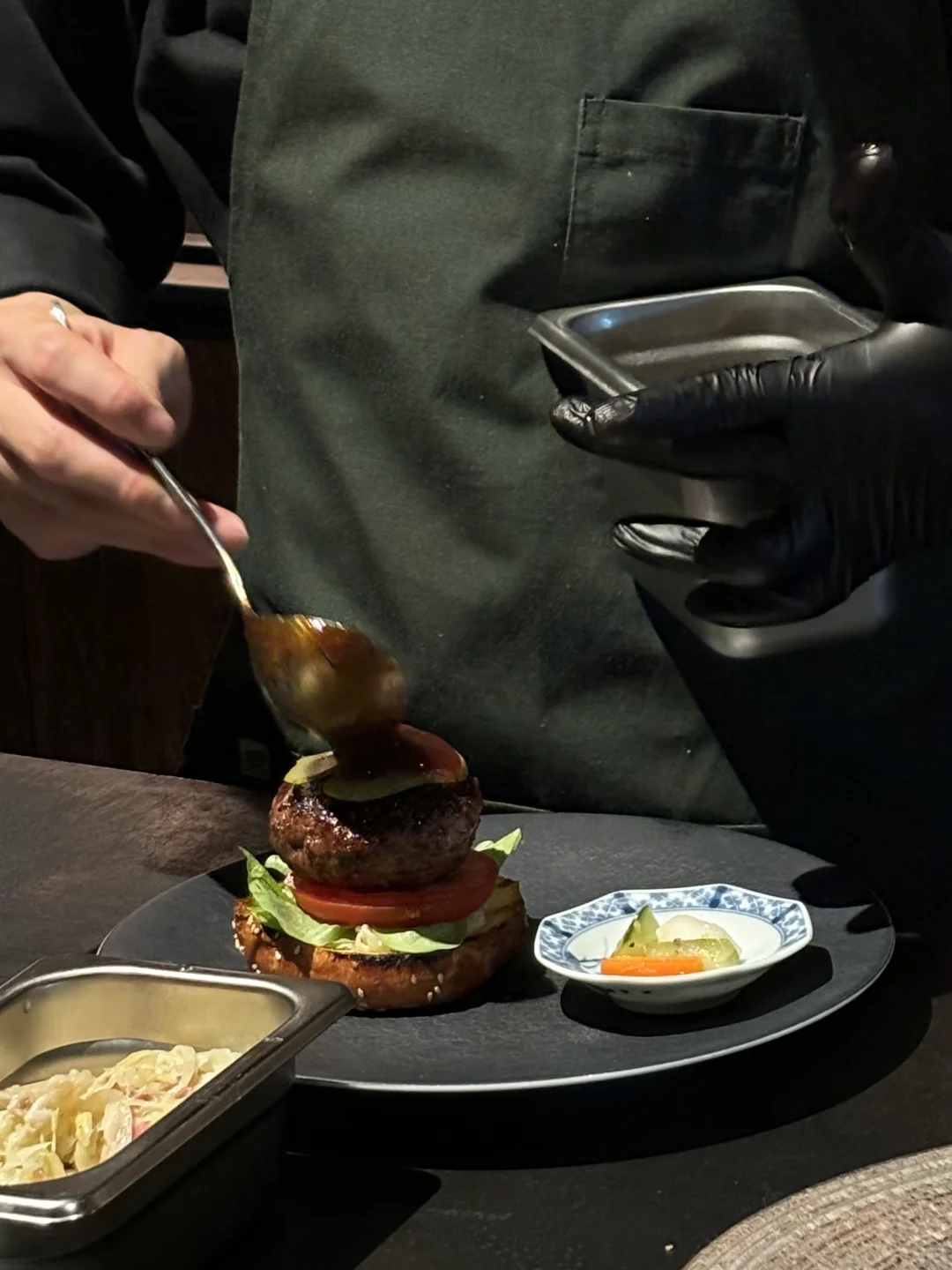 刷到了这家的A5神户和牛汉堡omakase,是心动啊,150pp的套餐一共8道菜,个人觉得蛮值得的没有花冤枉钱,服务氛围超好,可以看着厨师一点一点的做每一道菜