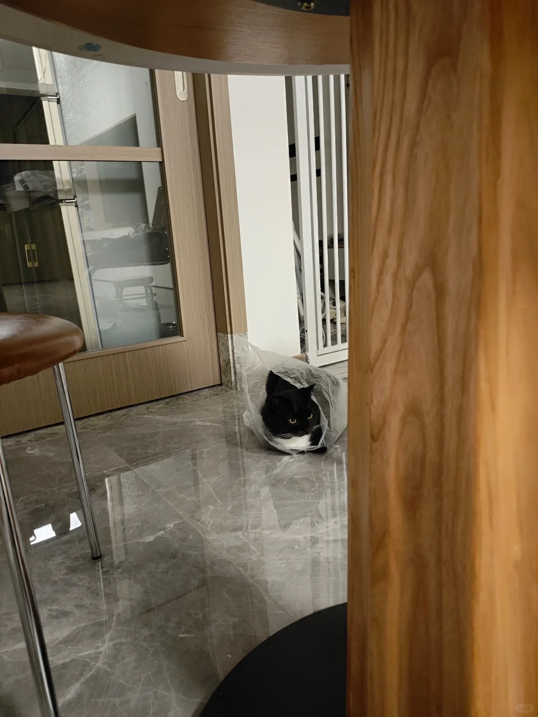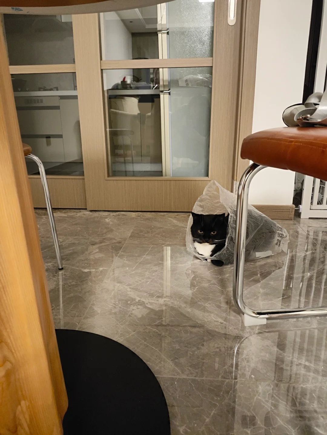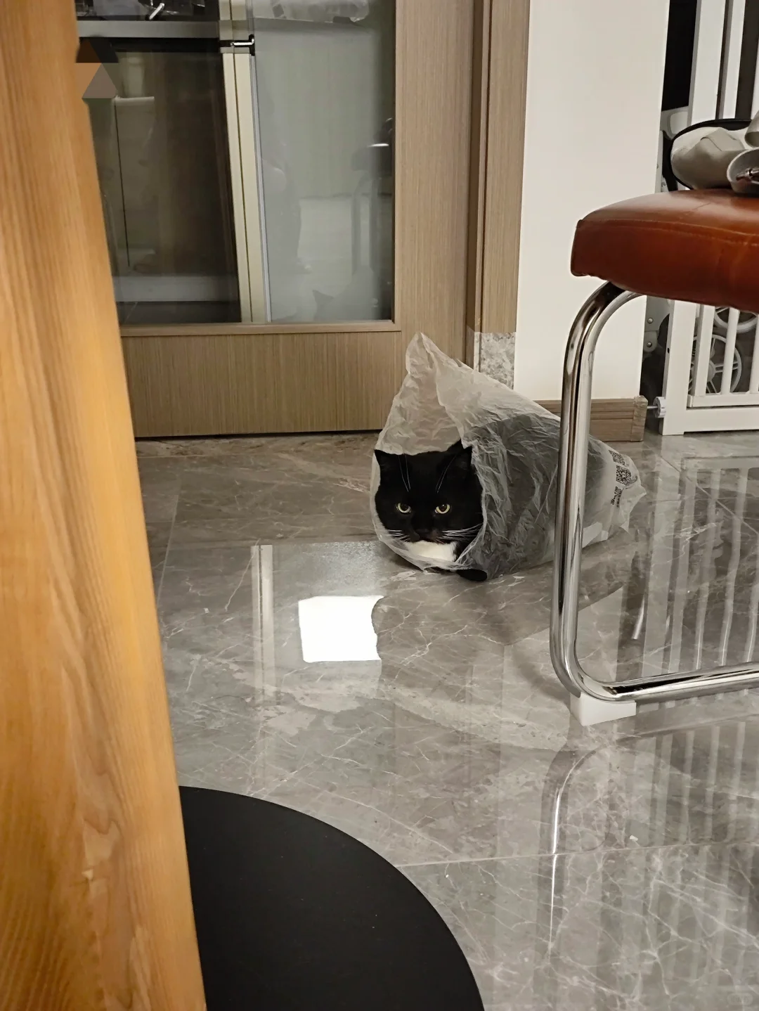 一脸严肃的把自己装进塑料袋
