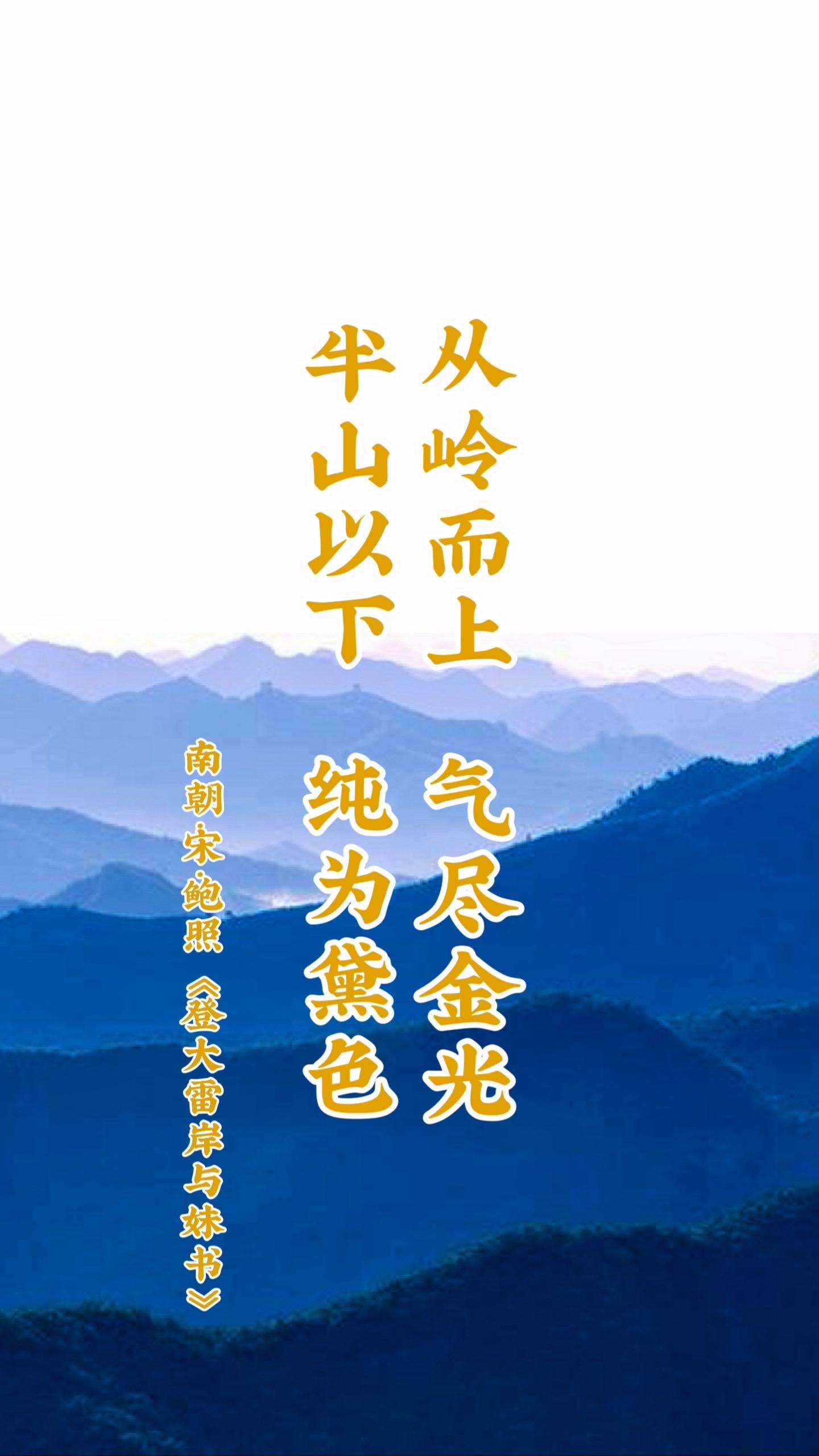 南朝·宋·鲍照 《登大雷岸与妹书》有云:从岭而上,气尽金光,半山以下,纯为黛色