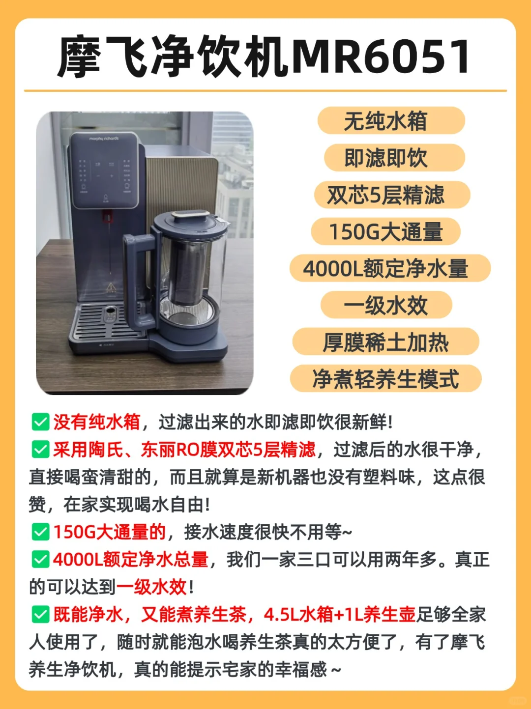 👉🏻总结下来,这款📌摩飞鲜活水净饮机MR6051表现很不错!