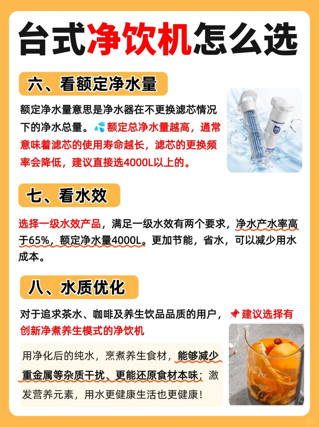 额定总净水量越高,通常意味着滤芯的使用寿命越长,建议直接选4000L以上的。