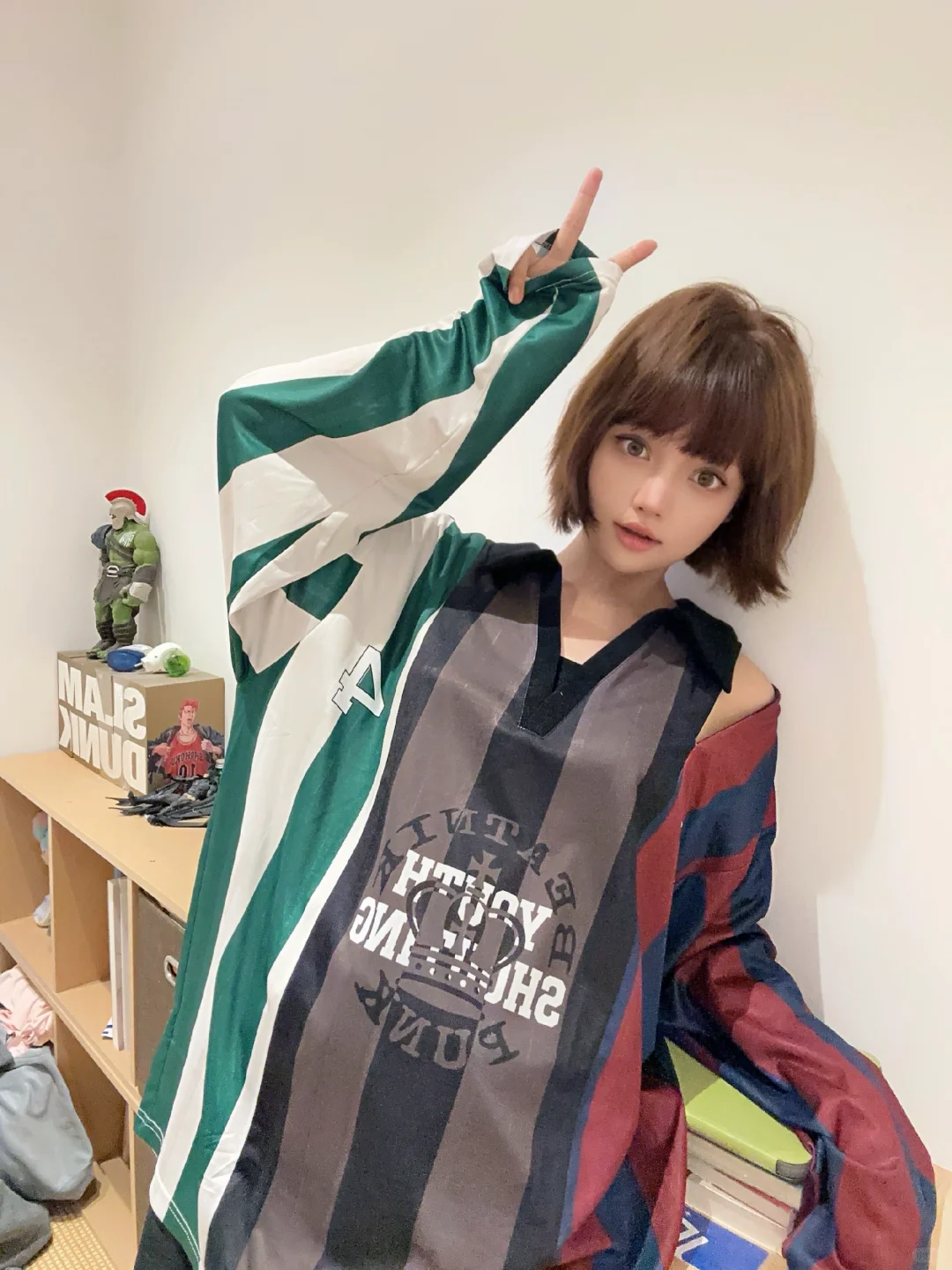 窗边的风裹着浅淡的光,裙摆随呼吸轻晃。黑衫露肩勾出松弛的软,紫蕾丝漫过膝弯,把日