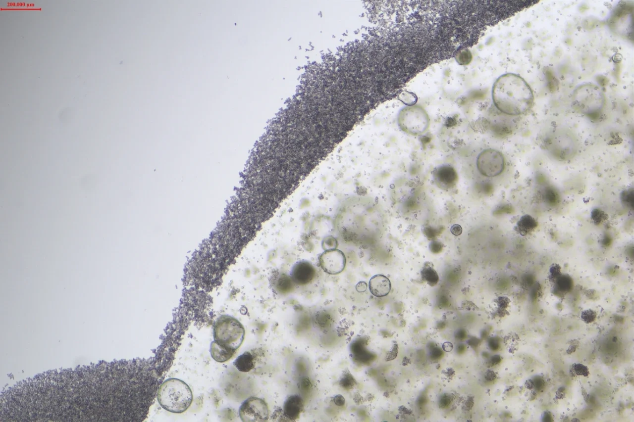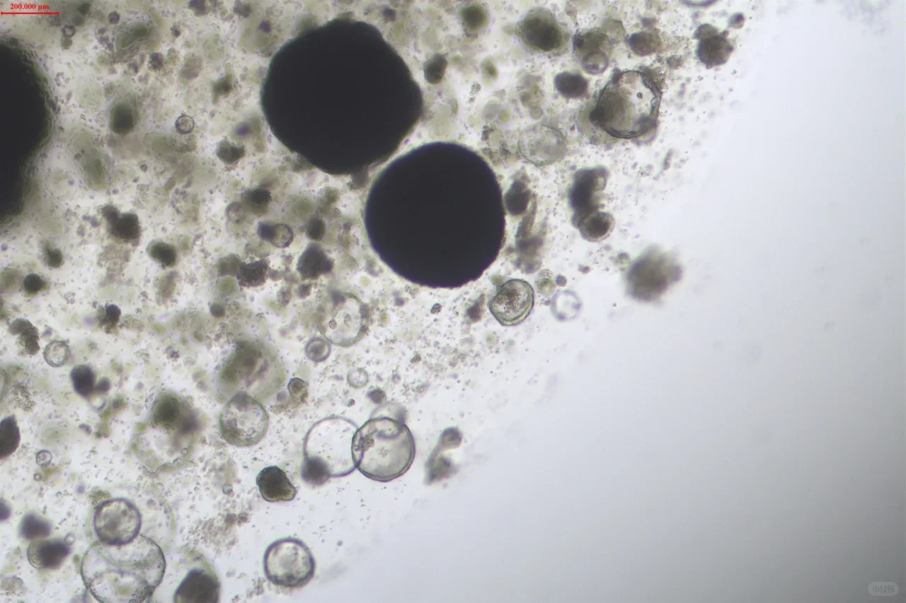图1-2:胶内污染:常见于组织未清洗干净,消化过滤后的细胞携带入胶内。 图3-4:培养基污染:培养基配制过程中污染或加培养基过程中的外源细菌污染。