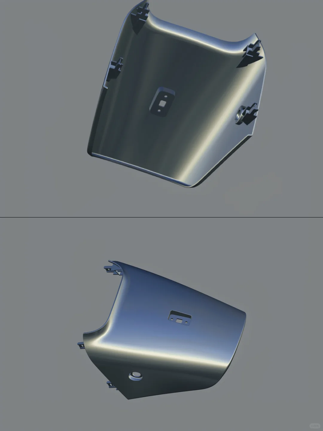 终于打印做出来了, 抽时间搞了下这个一直看不顺眼的挡板板。 既然一时间没法有比原装更好的改造构思。 那就保持原有线条收窄加延长吧。 纯粹我个人喜好的挡泥板, 图一挡泥板是手搓出来想着自己用的, 后来决定用扫描建模再设计出来更完美。 反正设计好可以3d打印出来了, 有偿服务一下大家。 如果你刚好也需要这个挡泥板,刚好也喜欢这个挡泥板。 那就滴滴我一下,让我也回下本。