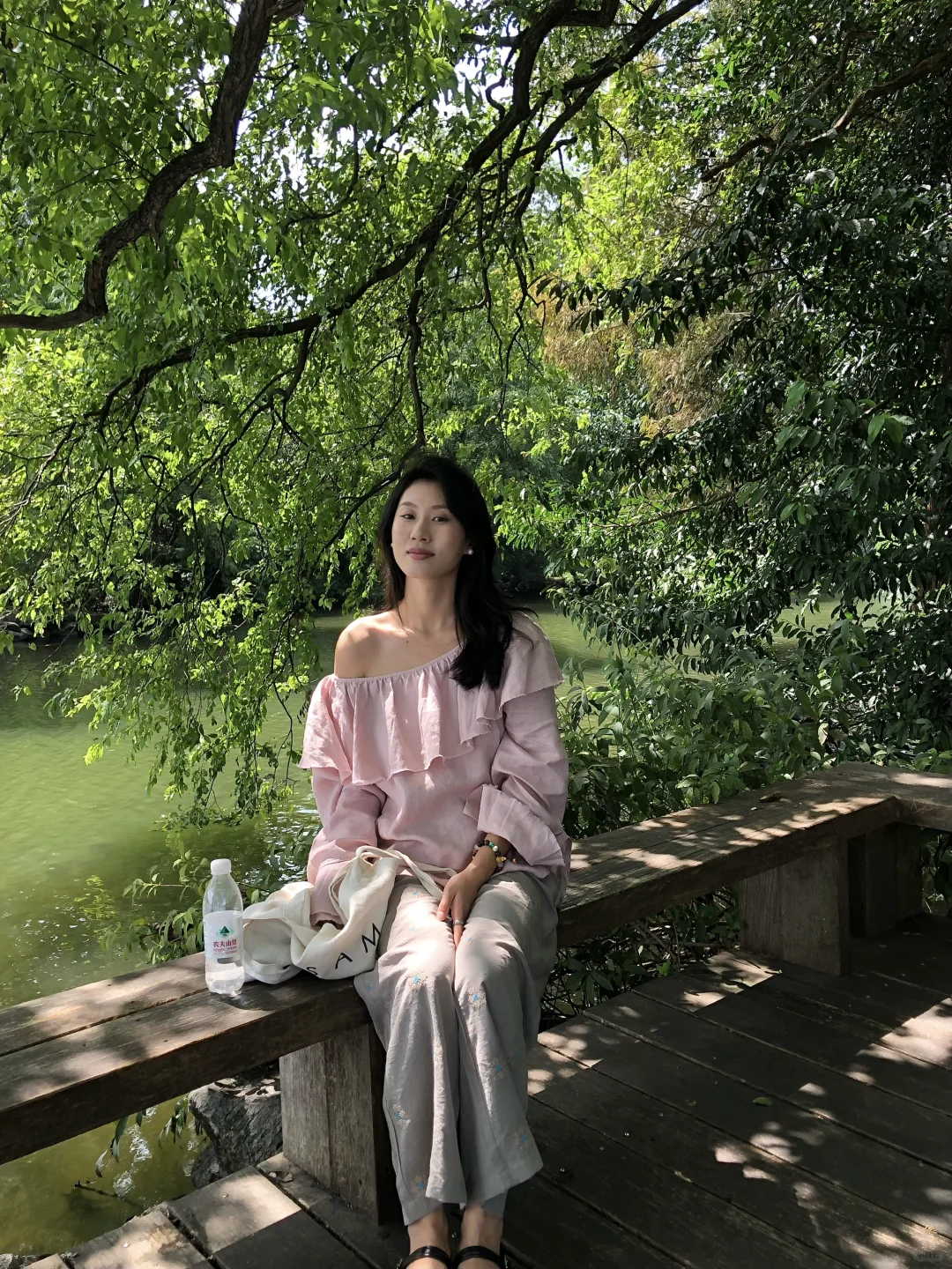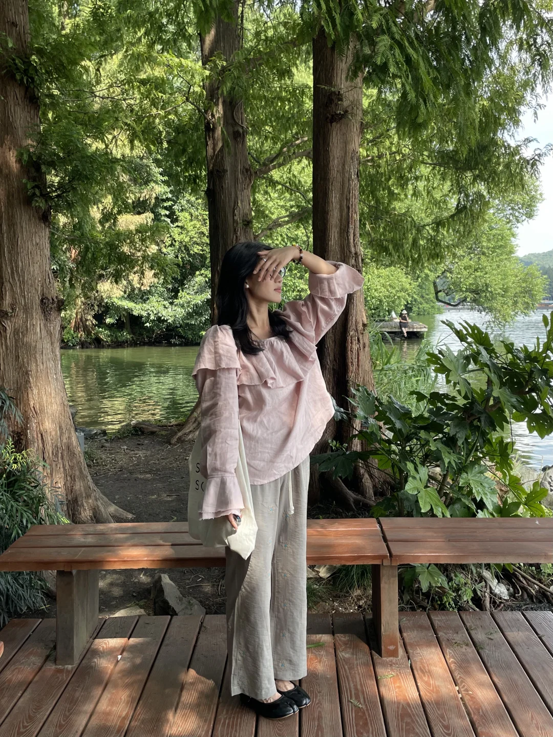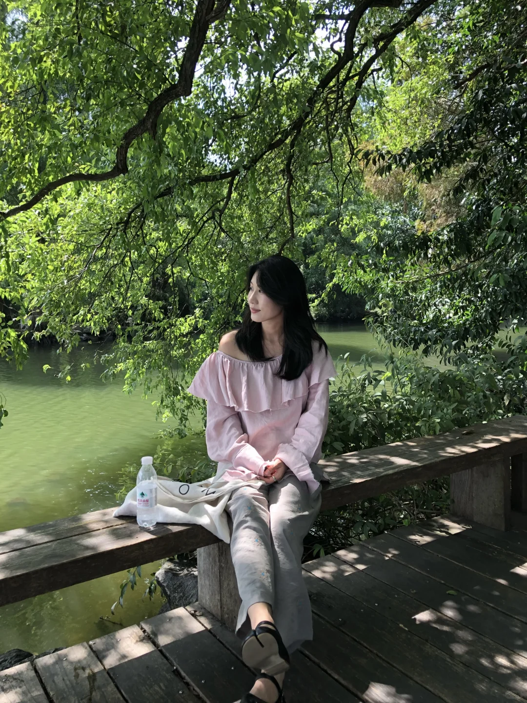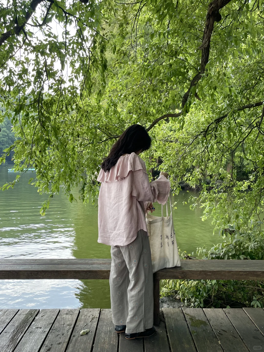 穿一身亚麻在西湖边漫步 真的好惬意好松弛 -