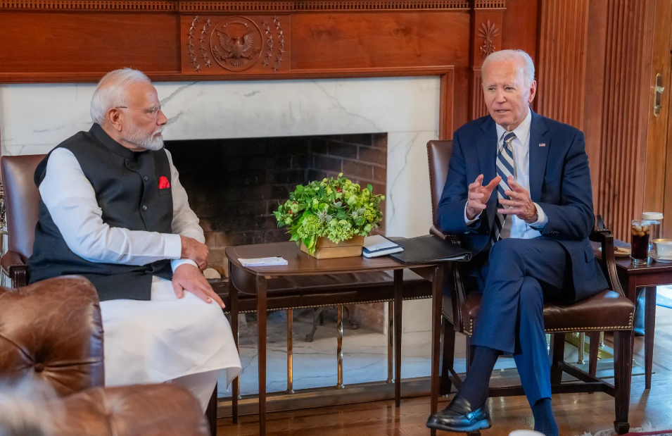 印度总理莫迪回应说:“我感谢拜登总统在特拉华州格林维尔的官邸接待我。我们的会谈非常富有成果。我们在会谈中有机会讨论了地区和全球问题。”