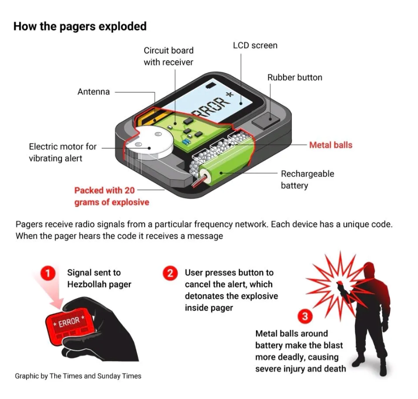 黎巴嫩拆解几个未成功引爆的“金阿波罗寻呼机”。发现该寻呼机从制造的时候就按遥控炸弹制造! 该寻呼机内部被藏了大约20克左右的爆炸物以及杀伤碎片,并且该寻呼机外壳不可拆卸,即使是拆卸之后,非专业人士也分辨不出来是否是寻呼机部件。 通过寻呼机的编码发送信息确定引爆,也意味着完全可以通过长期的识别来鉴定哪些是平民,但是以色列却选择了将所有使用这款寻呼机的人进行杀伤。 从现在看,这个寻呼机的改造制造难度非常大,台湾的这家企业没有参与,感觉有点想象不到。各位是怎么看的?欢迎评论区留言。