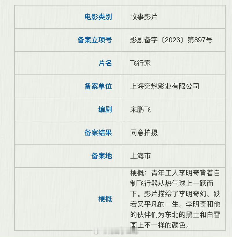 故事梗概:一个狂妄的普通工人李明奇(蒋奇明 饰),终其一生想与蓝天作伴,他与东北的文化记忆交融为一体,离奇的宿命、漂流与等待、聚散与离合。梦想既是历史。