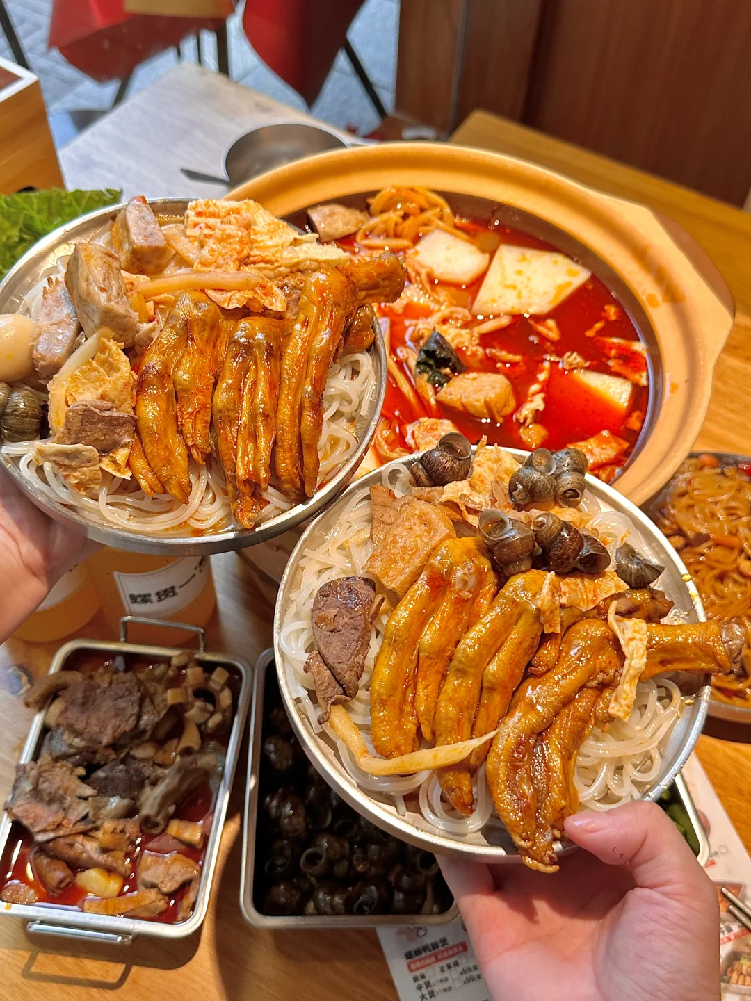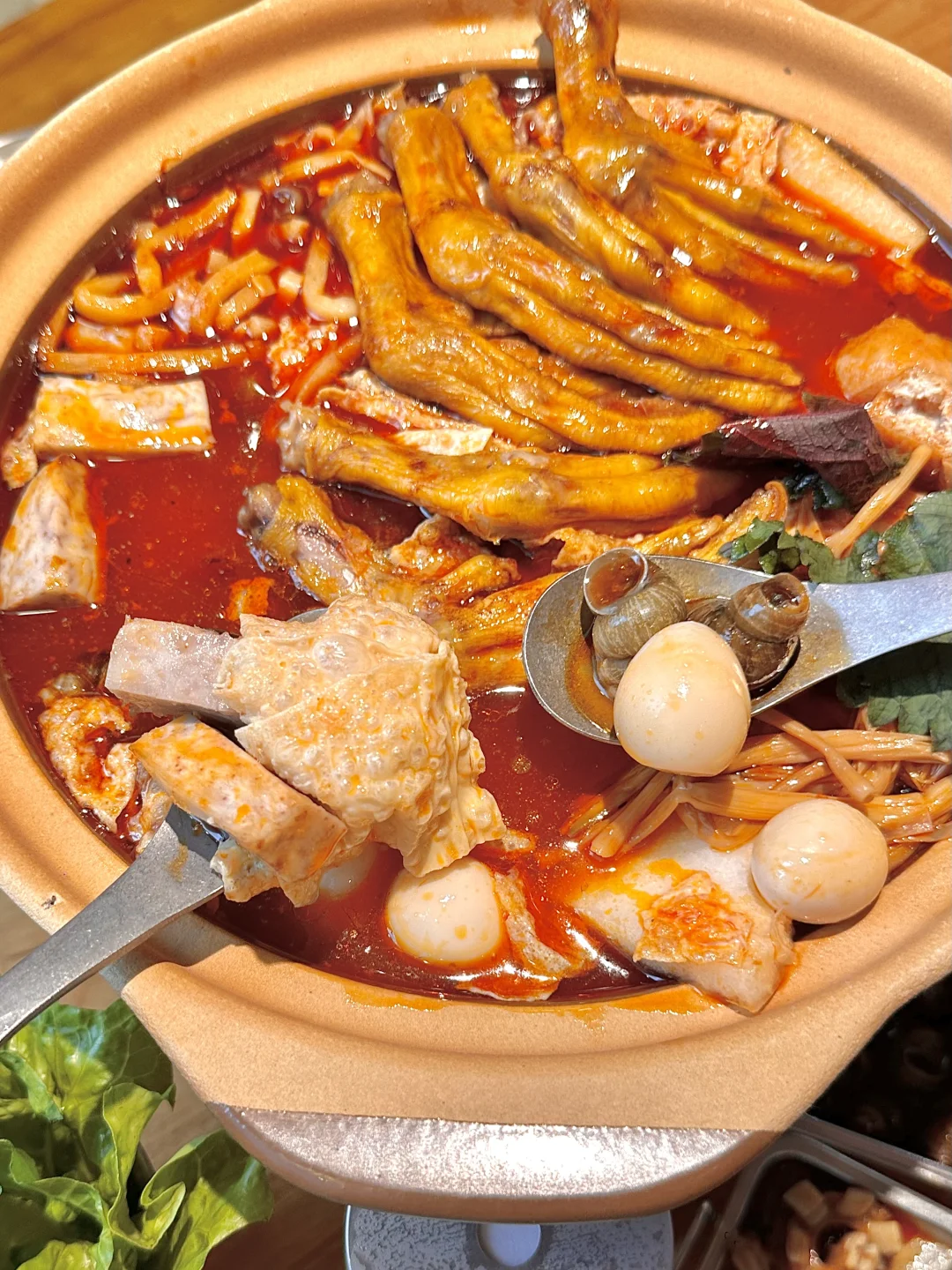 咬开那金黄酥软的鸭脚外皮,里面的肉质早已被汤汁浸透,轻轻一抿即化,满足感爆棚!😋 而那螺蛳,颗颗饱满,鲜味十足,让人忍不住一颗接一颗,根本停不下来!🦐