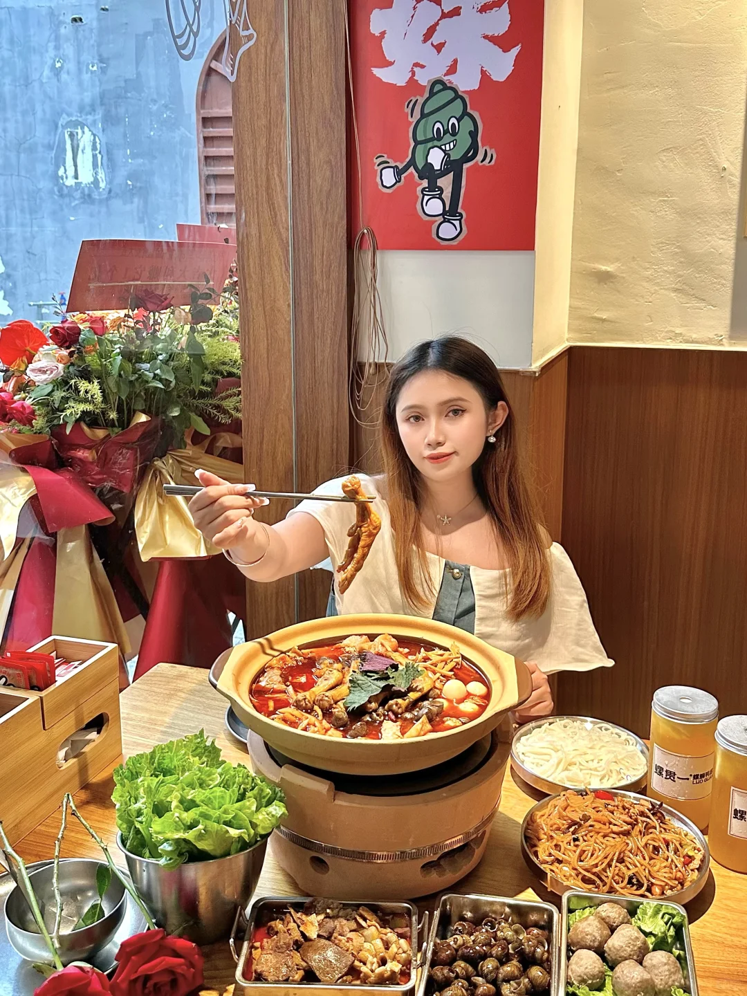 一进门,闻到那股独特的螺蛳香,馋哭了😭😭螺蛳鸭脚煲汤色诱人,螺蛳的鲜、鸭脚的糯、酸笋的爽,还有黄花菜,鹌鹑蛋,桂平腐竹,软糯的荔浦芋头……满满一锅都是料 真的绝!