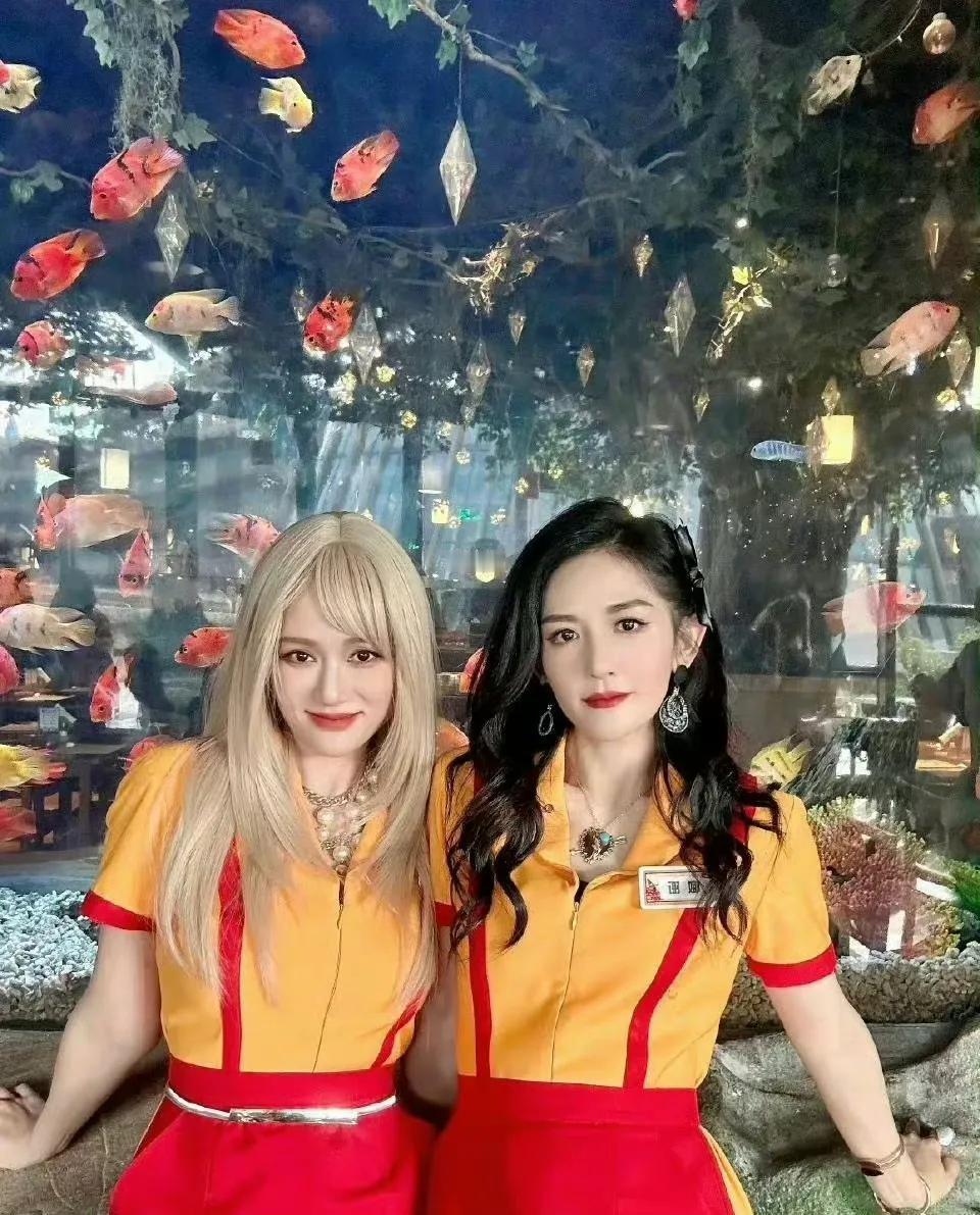 杨幂和张小斐这种坐姿,模仿了下真模仿不来。够独特的!