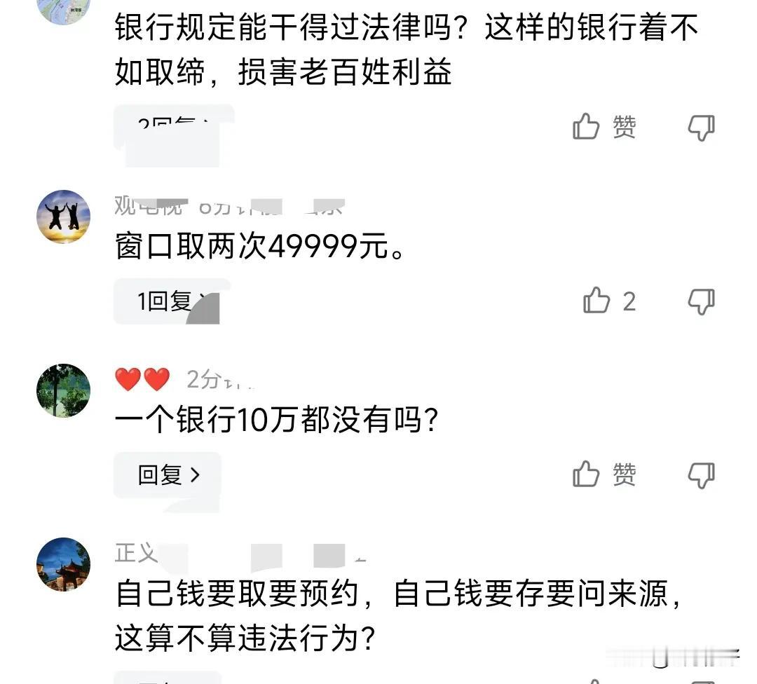 真的是越来越扯淡了,现在取个钱比以前限制多多了,超过5万块还要预约,现在经济发展的这么好了,别人身价都几百亿上千亿了,有客户想取个5万块钱还要预约,还要提前预约,有没有搞错? 存钱的时候很快就存了,取钱偏偏各种卡,我就想问问这钱到底是不是储户的?取个钱还这么多理由,这么多限制。 奇葩规定也是越来越多了。 9月23日发布,一男子去建行取10万块钱被拒绝,说要提前一天预约。超过5万块钱就要预约。 这钱要是用来救命,那不得耽误了吗? #建行回应男子取10万现金被拒#