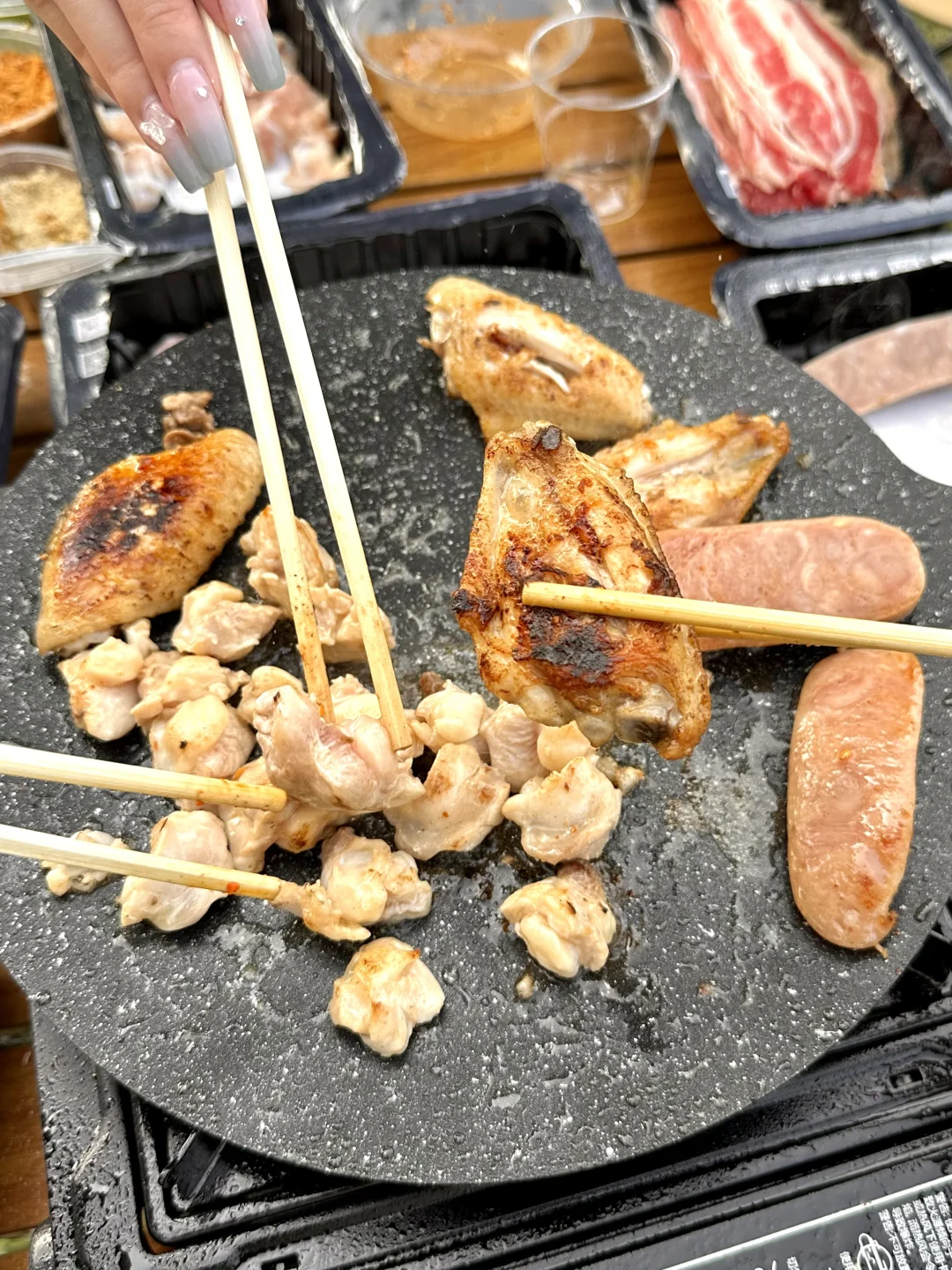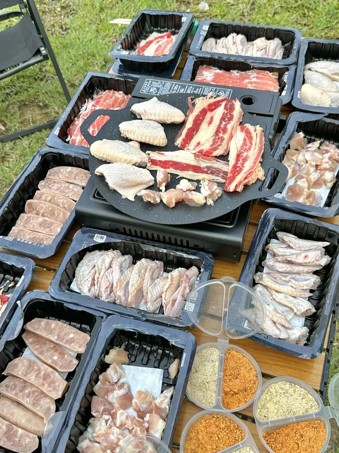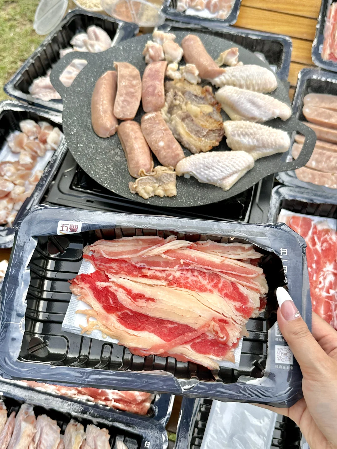 礼包里的食材真的太丰富了!各种新鲜的肉类、鸡翅、肉肠、掌中宝等等……还有那些让人欲罢不能的烤肉调料,筷子🥢碗,烤炉都贴心准备有!