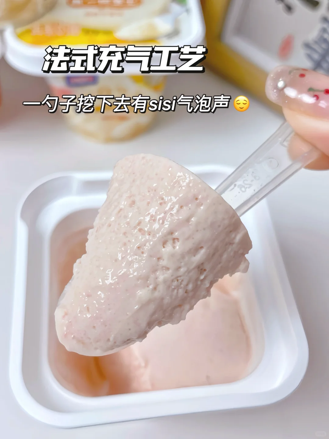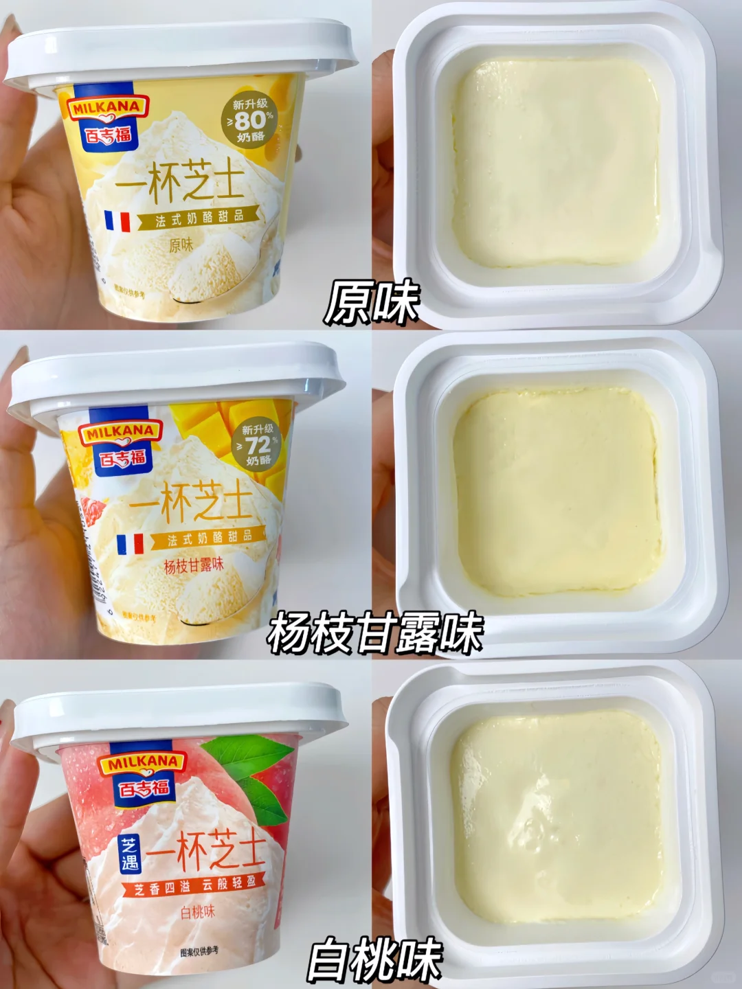 原味的奶酪含量高达80%,但吃起来完全不厚重,得益于独特的法式工艺,一勺子挖下去有sisi的气泡声,入口是那种很轻盈的感觉,丝滑绵密~而且一点也不腻!!这口感我称之为真正的法式奶酪轻甜品!!早餐拿来抹面包,奶呼呼的超满足[赞R]!