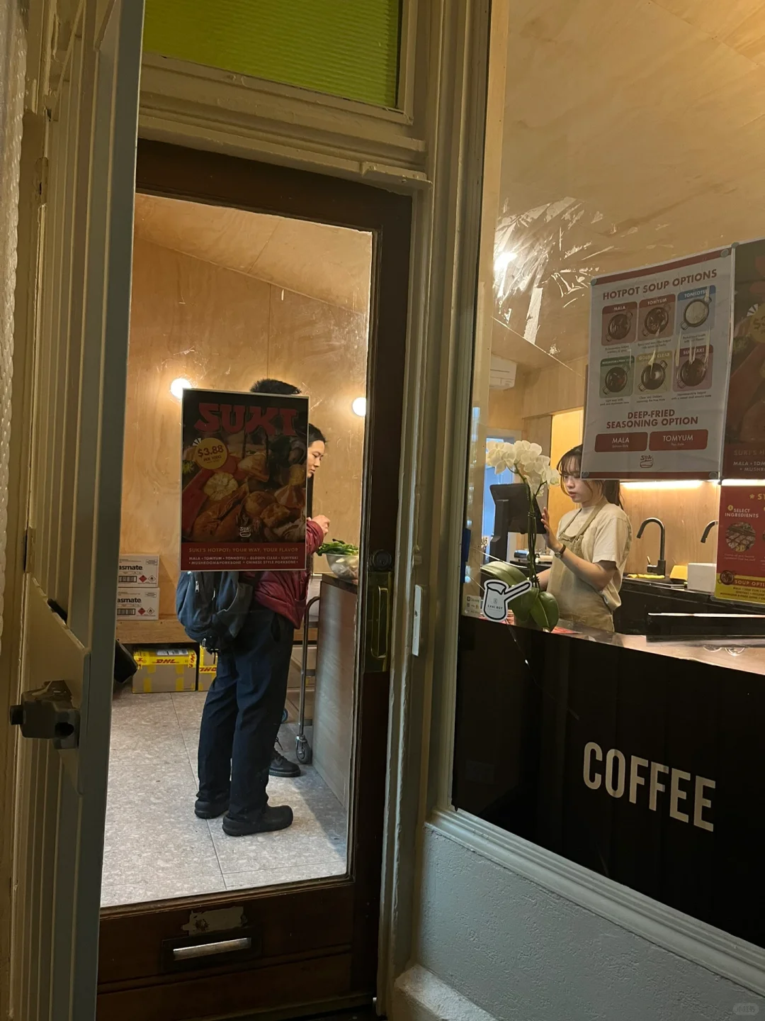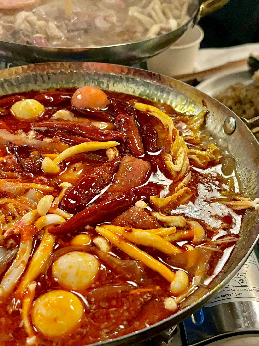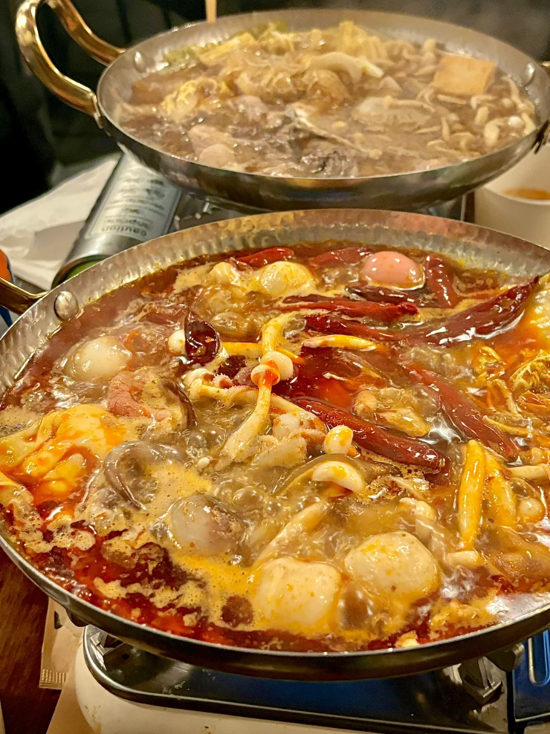 最近路这家泰式一人食小火锅,巨巨巨便宜就进去探个究竟 他家有点像是麻辣烫,也是自选菜品称重然后放到小火锅里涮,3.88🔪/100g,四舍五入等于免费吧 看到这个锅我真的小脑萎缩了,你们麻辣烫圈都这么卷了吗?! 我们点了麻辣锅底和寿喜锅锅底,他家的麻辣锅底是牛油火锅的味道,味道比较辣。寿喜锅很香,我直接狂炫一大碗。[色色R] 📍 Suki 335 La Trobe St, Melbourne CBD