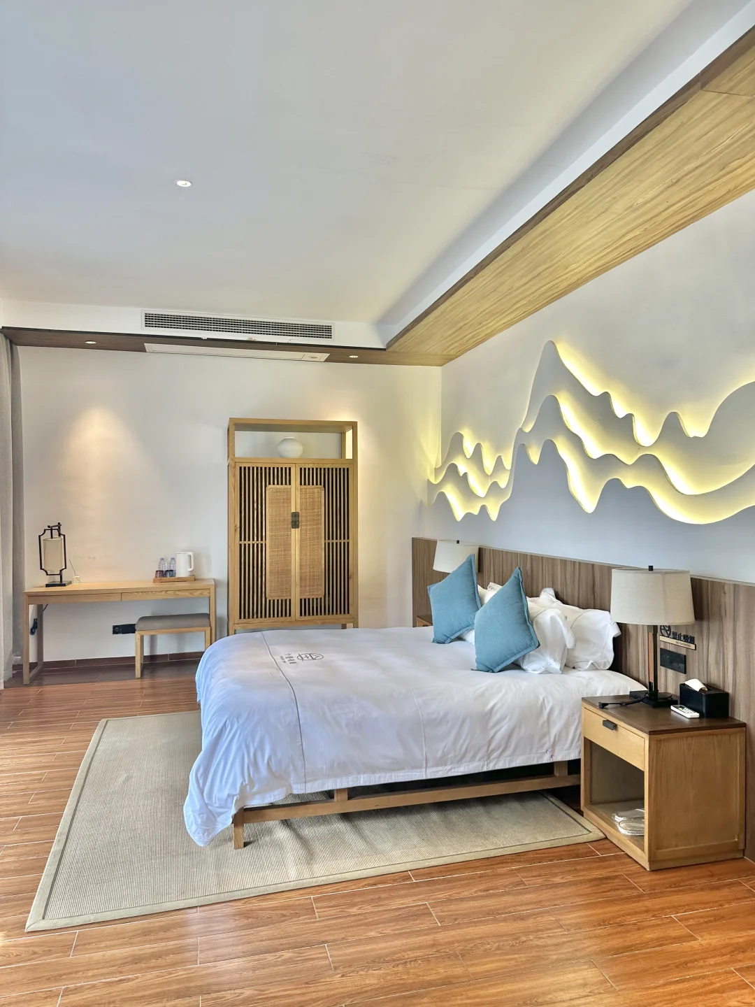 🛌房间每一处都精心设计,超大落地窗,原木色的家具搭配淡雅的布艺,简约而不失温馨。窗外是满目翠绿、潺潺流水声,从精选的洗护用品到舒适的床品,无一不透露着民宿主人的用心与品味。