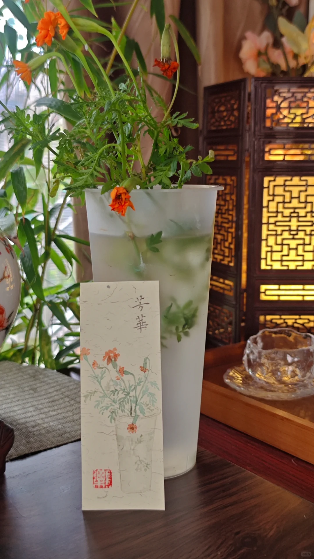 这支不小心被折断的小菊花 随意插在一个饮料杯里 莫名觉得很有意境 于是随身拿起一张小纸 把她记录下来