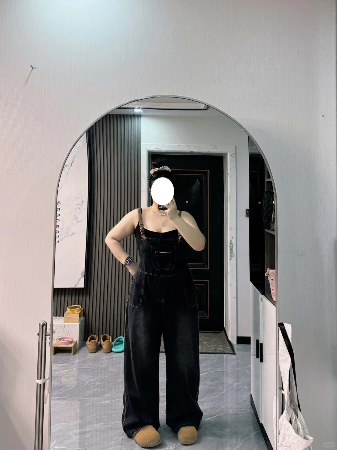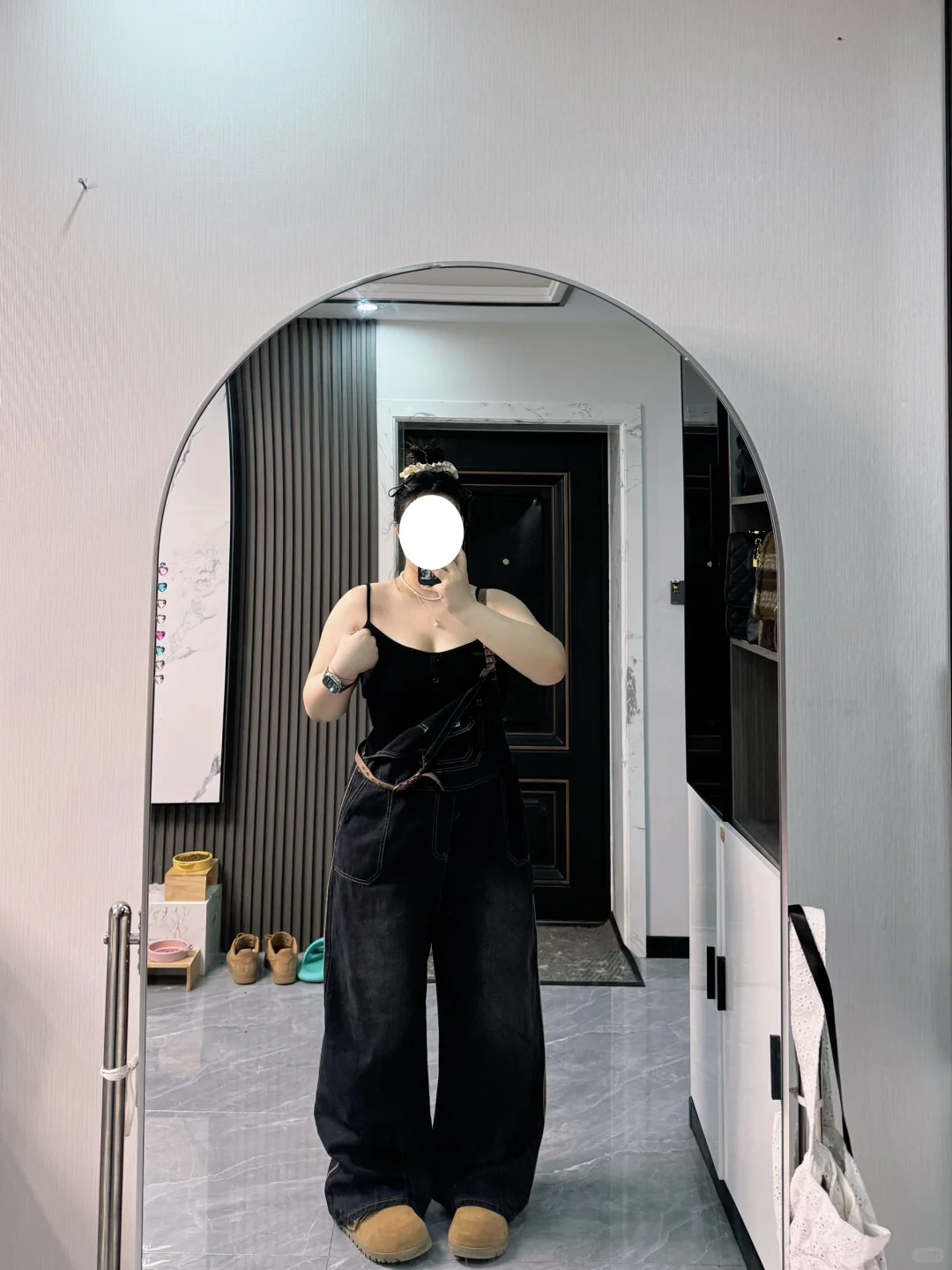 不费力时髦 背带裤 今天一身黑 慵懒感穿搭 显瘦神裤 显瘦穿搭 ootd每日穿搭 大码穿搭 穿搭 200斤穿搭